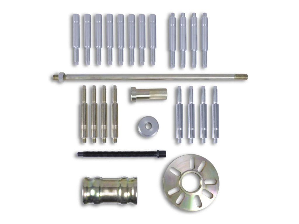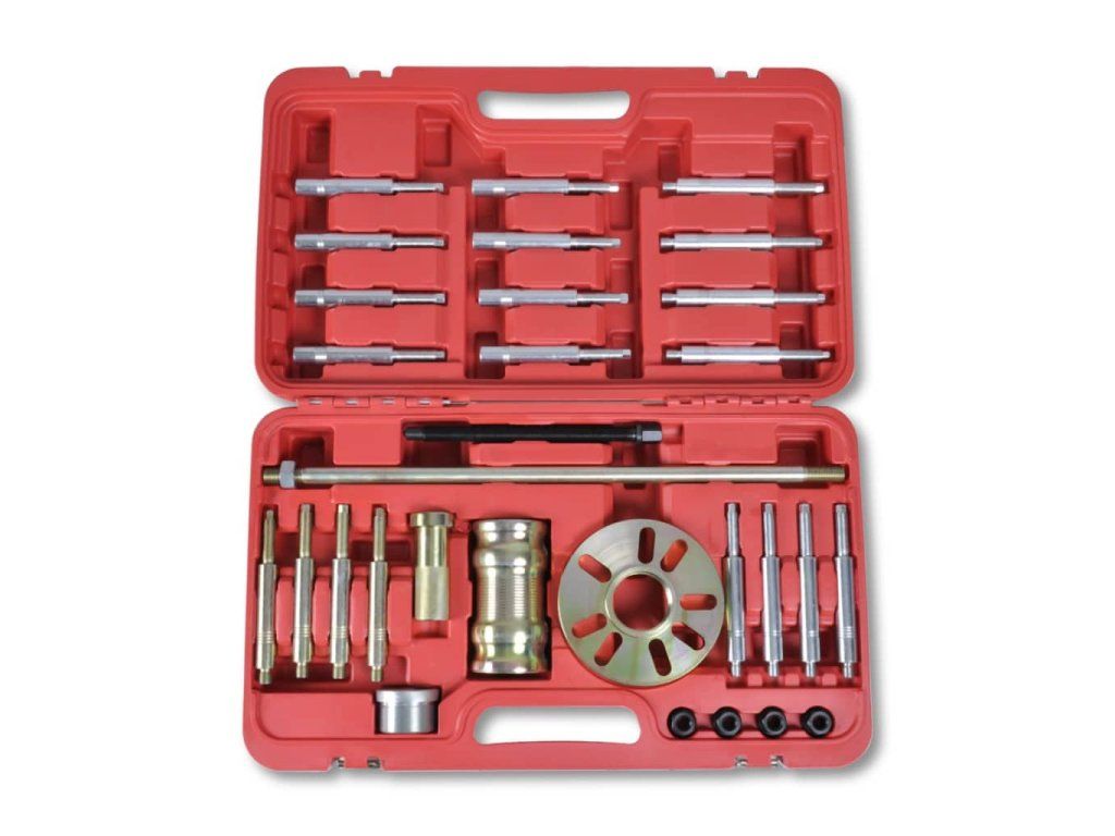 Táto odolná sada sťahovákov nábojov kolies obsahuje 30 dielov a je určená na odstraňovanie pevne priskrutkovaných závrtných skrutiek a nábojov z brzdových bubnov na osobných automobiloch a ľahkých úžitkových vozidlách.