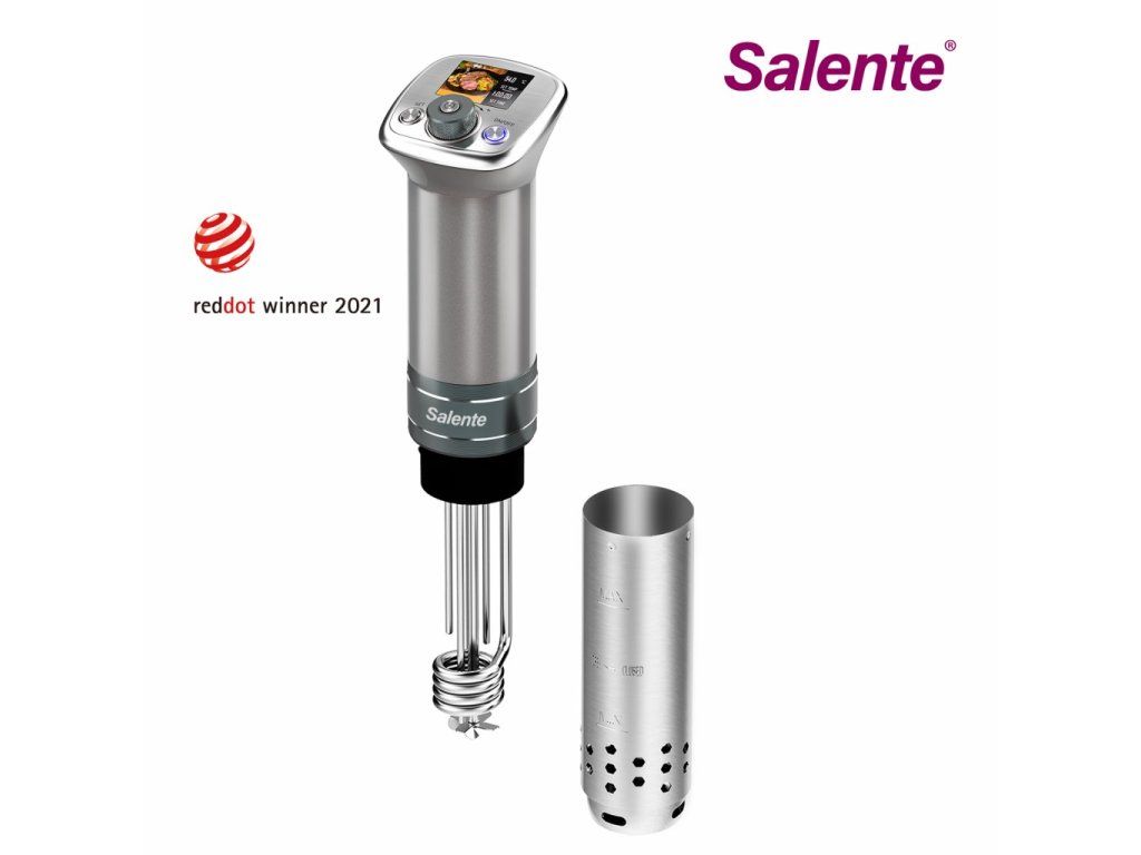 Velkým bonusem při čištění je odnímatelný nerezový kryt, který ukrývá další z předností Sous Vide vařiče Salente – nerezovou topnou spirálu s prodlouženou životností a nerezovou hnací vrtulku garantující rovnoměrné proudění a teplotu vodní lázně.SPECIFIKACE: