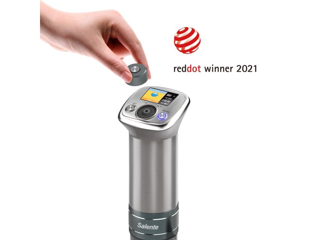 Otočný ovladač plní dvě funkce v jednom – otáčením se můžete pohybovat mezi recepty nebo volbami, jeho stisknutím můžete zase potvrzovat volby. Za běžných okolností by byl otočný ovladač u voděodolného vařiče příčinou nespolehlivosti a tak se inženýrům ze Salente podařilo vyvinout bezkontaktní magnetický ovladač, který splňuje náročná kritéria voděodolnosti třídy IPX7.Voděodolné provedení třídy IPX7