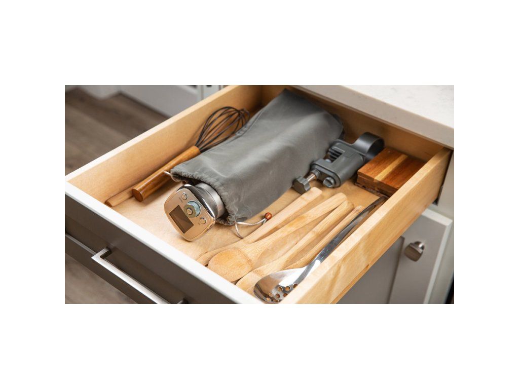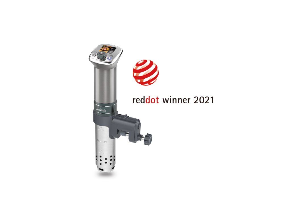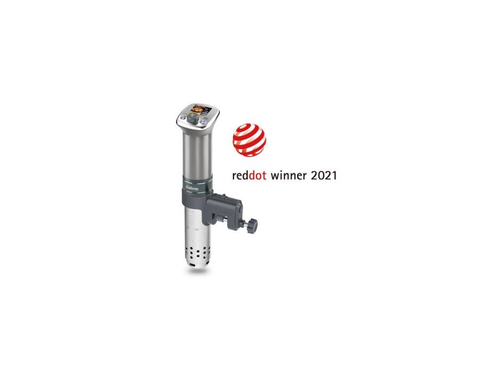 • Celosvětově první Sous Vide vařič s barevným displejem • Vítěz a držitel prestižního designového ocenění Red Dot Design Award (Winner 2021) • Pro hrnce o objemu 6-50 litrů • Maximální upínací šířka pro pláště hrnce o tloušťce 1-23 mm • Integrovaný barevný TFT displej se zobrazením receptů (41 × 32 mm) • 18 přednastavených receptů v paměti vařiče • Možnost uložení 5 dalších vlastních receptů • Multifunkční magnetický otočný ovladač s možností odejmutí pro snadné čištění • Volitelný rozsah teploty 40-90 °C v krocích po 0,1 sekundy • Volitelný rozsah času až od 5 minut až do 100 hodin v krocích po 1 minutě • Integrovaný termostat pro udržování teploty s přesností ±0,3 °C • Kompatibilní s hrnci z jakéhokoliv materiálu i s plastovými nádobami určenými pro přímý styk s potravinami • Voděodolné provedení třídy IPX7 (ponoření na dobu 30 minut do hloubky 1 metru) • Nerezová topná spirála s prodlouženou životností • Nerezová vrtulka garantující rovnoměrné proudění a teplotu vodní lázně • Měkké gumové polstrování držáku pro maximální ochranu povrchu hrnce • Odnímatelný nerezový kryt topné spirály pro snadné čištění • Možnost volby jednotek teploty (°C nebo °F) • Průtok vodní lázně 20 litrů za minutu • výška hladiny 6,6 cm • Délka přívodního kabelu: 1 m • Ochrana proti přehřátí • Indikace nízkého stavu vodní lázně • LFGB certifikace pro nezávadný styk s potravinami • Certifikace CE, RoHS • Jmenovité napětí): 220-240 V? • Jmenovitý kmitočet): 50/60 Hz • Jmenovitý příkon): 1100 W / 5 A • Rozměry (š × h × v): 83 × 67 × 380 mm • Hmotnost: 1,3 kgOBSAH BALENÍ: