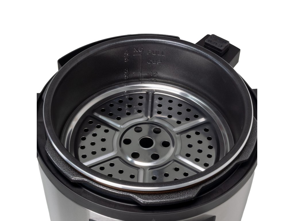 • Rozměry: 35 × 33 × 33 (výška s tlakovou poklicí) cm • Hmotnost: 3,8 kg hlavní část hrnce, 0,9kg tlaková poklice • Napájení 230 V • Vnitřní hrnec 6l, teflonový povrch • Výkon 1200 W • Barevné provedení: černo-nerezovéOBSAH BALENÍ: