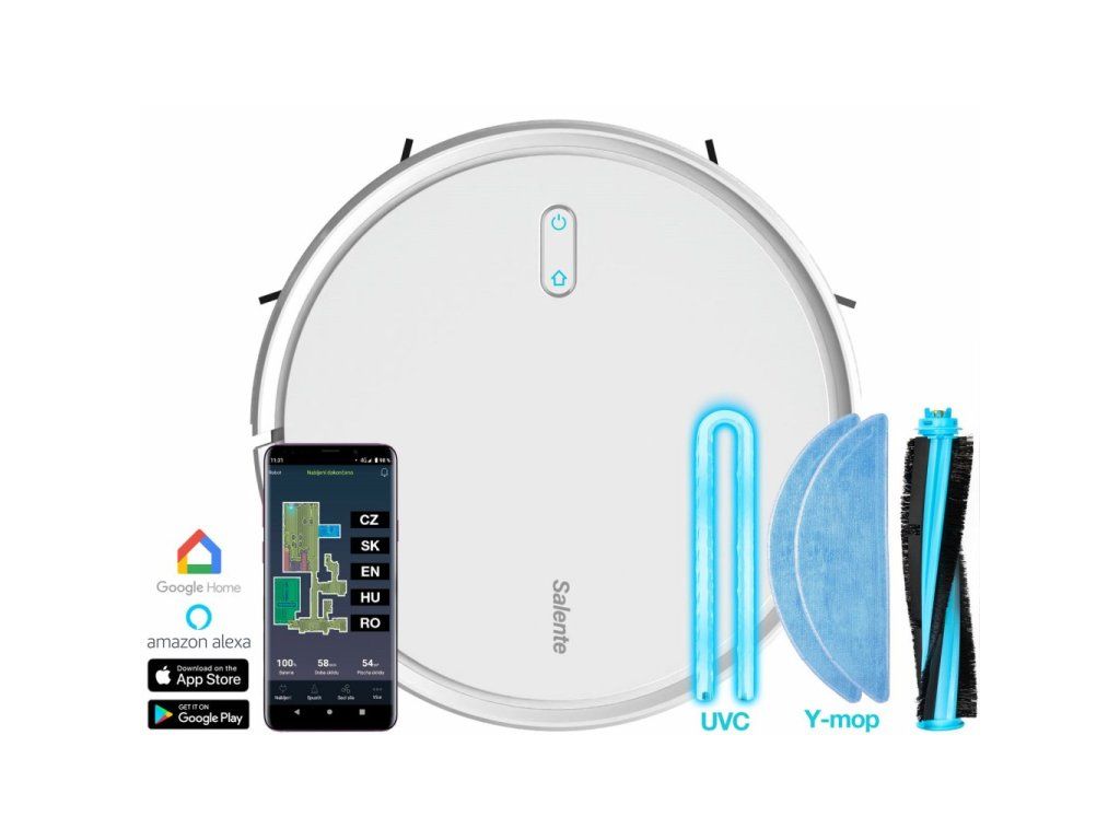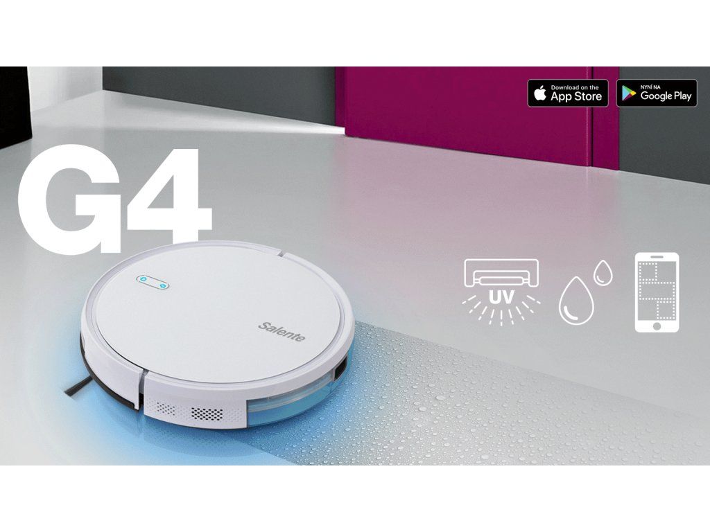 Salente G4 je schopen vaši podlahu vysávat, vytírat a desinfikovat pomocí vestavěné UVC lampy současně. Pomocí SMART gyroskopické navigace a snadné kontroly uklízeného prostoru pomocí mobilní aplikace v českém jazyce dokáže snadno, rychle a kvalitně uklidit váš členitý byt nebo dům a po ukončení úklidu se vrátit zpět do nabíjecí základny.SMART gyroskopická navigace