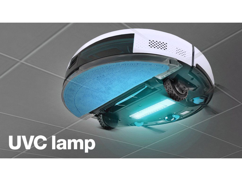 Robotický vysavač Salente G4 je vybaven moderní UVC lampou, která díky vyzařování UV-C záření ničí 99,99% virů a bakterií na ozařovaném povrchu. UV-C světlo poškozuje DNA a RNA choroboplodných zárodků, eliminuje jejich schopnost reprodukce a tím dosahuje rychlé, pohodlné a účinné dezinfekce.Vysává a vytírá současně