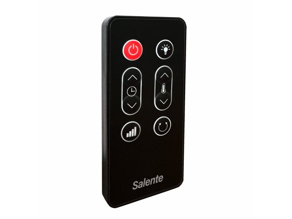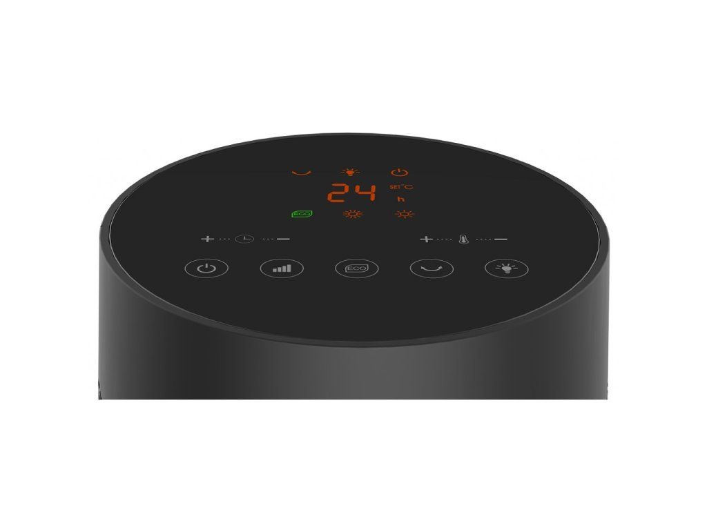 Jednoduchost obsluhy i jednoduchost čištění doplňuje digitální ovládací panel s dotykovými ovládacími senzory a barevným displejem. Stačí pouhý dotek prstem na příslušnou ikonu na displeji a topidlo okamžitě reaguje a plní vaše příkazy. Tento beztlačítkový ovládací prvek se vyznačuje zejména výrazně vyšší životností oproti klasickým ovládacím tlačítkům a navíc jej lze pohodlně udržovat a čistit díky absenci mechanických prvků a výstupků. Hladký celistvý povrch se proto velmi jednoduše udržuje a čistí – stačí pouze jemně setřít vlhkým hadříkem. Dotykový ovládací panel umožňuje: • Zapnutí/vypnutí topidla (pohotovostní režim) • Nastavení časovače • Nastavení teploty • Přepínání příkonu • Zapnutí/vypnutí EKO funkce • Zapnutí/vypnutí efektu hořícího krbu • Zapnutí/vypnutí oscilaceDálkové ovládání