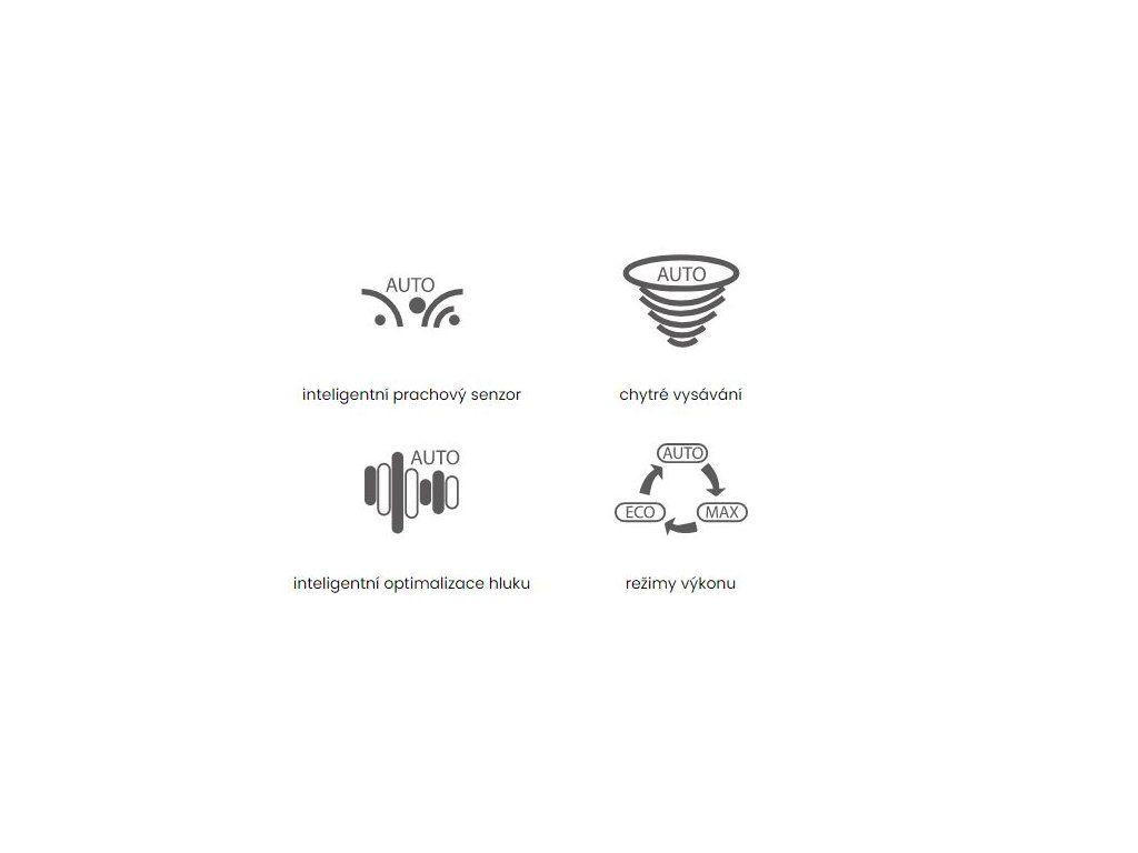 Vysavač Salente SmartDust 3.1 nabízí tři režimy vysávání, které se volí pomocí dotykového tlačítka. V režimu AUTO využívá senzor na rozpoznání množství prachu a nečistot, díky kterému automaticky přizpůsobuje svůj výkon podle stupně znečištění podlahy. Tento inteligentní automatický režim prodlužuje výdrž baterie a snižuje hladinu hluku při úklidu. V případě potřeby můžete využít režimu MAX, který nabízí vysoký sací výkon až 28 kPa a režim ECO využijete například na záclony nebo žaluzie.S inteligentním HMI displejem máte vše pod kontrolou
