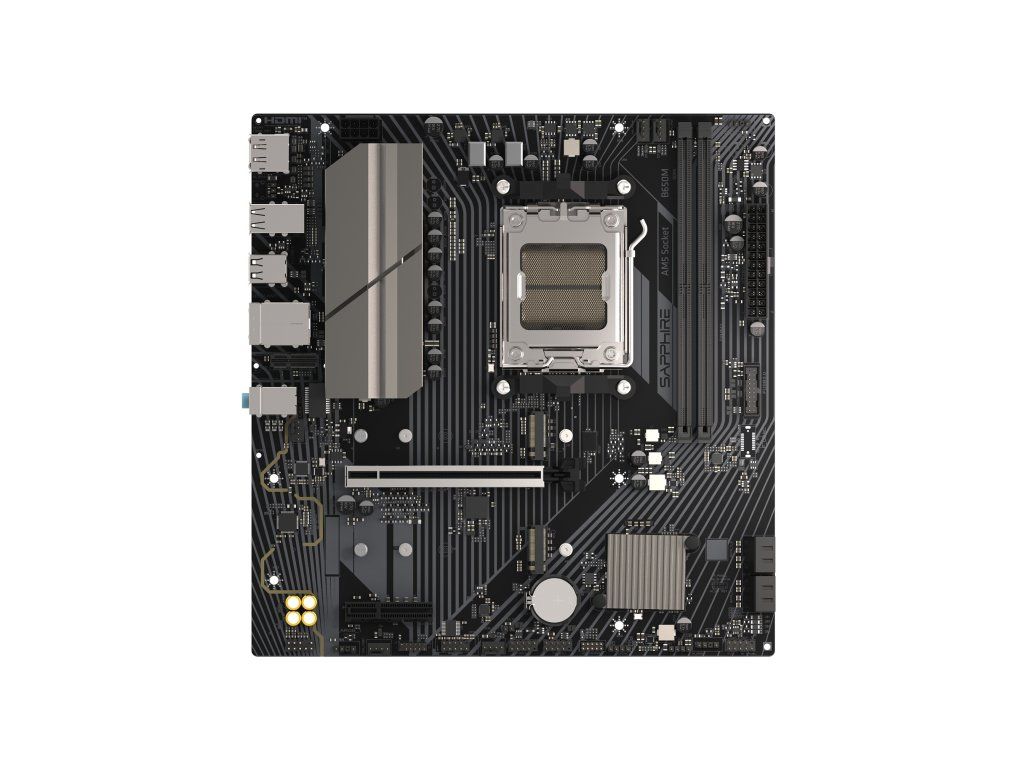SAPPHIRE B650M-E Čipset: AMD® B650 Rozměrový formát: micro-ATX, 244x235mm Podpora pro procesory: AMD Ryzen™ řady 9000/8000/7000 Patice procesoru: AM5 Paměť: * 2x DIMM, dvoukanálové DDR5, maximální kapacita paměti 96 GB (2x 48 GB), až 7600 MT/s (přetaktování) Grafické výstupy: (Specifikace grafiky se mohou lišit v závislosti na nainstalovaném CPU.) * 1x DisplayPort * 1x HDMI Zvuková karta: kodek Realtek® ALC897 HD Audio, 5.1kanálový zvuk Ethernet: Realtek® RTL8125BG 2,5 GbE WLAN + Bluetooth: ne Rozšiřující sloty: * 1x PCIe 4.0 x16 * 1x PCIe 4.0 x4 Úložný prostor: * 1x PCIe 5.0 M.2 * 1x PCIe 4.0 M.2 * 4x SATA USB: Přední USB (celkem 6 portů) * 1x USB 3.2 Gen1 (2x typ A) * 2x USB 2.0 (4x typ A) Porty na zadním panelu: * 1x DisplayPort * 1x HDMI™ * 1x RJ45 LAN * 6x USB 2.0 * 2x USB 3.2 Gen1 typ A * 3x audio konektor Debug LED: * DRAM: žlutá * CPU: červená * GPU: bílá * Bootování: zelená Odkaz na stránku výrobce: https://www.sapphiretech.com/en/consumer/mb_sapphire-b650m-eDodatočné parametre