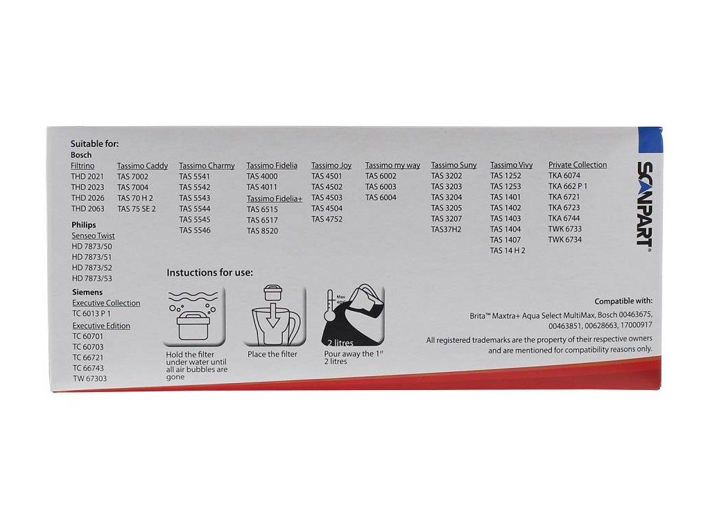 Scanpart filter na vodu vhodný pre všetky bežné filtračné kanvice Brita® na stolovú vodu. Testované TÜV.