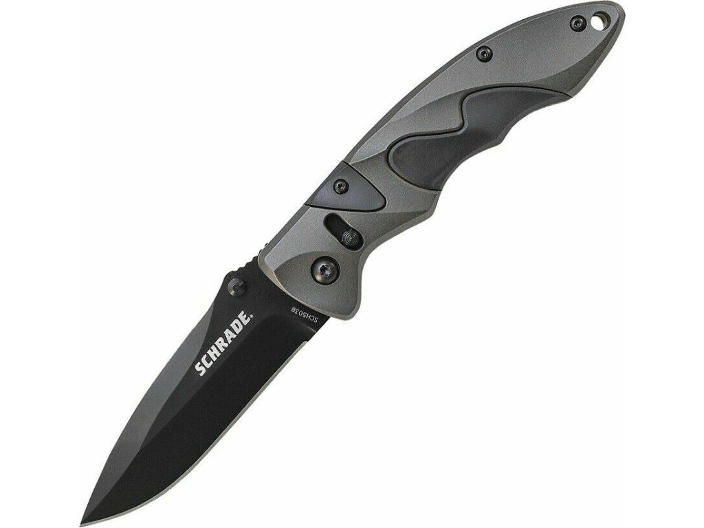 Ľahký zatvárací vreckový nôž Schrade Black AUS-8 Blade, AK Color Aluminum Handle w/Black je vhodný na taktické účely, ale i na každodenné (EDC) použitie.