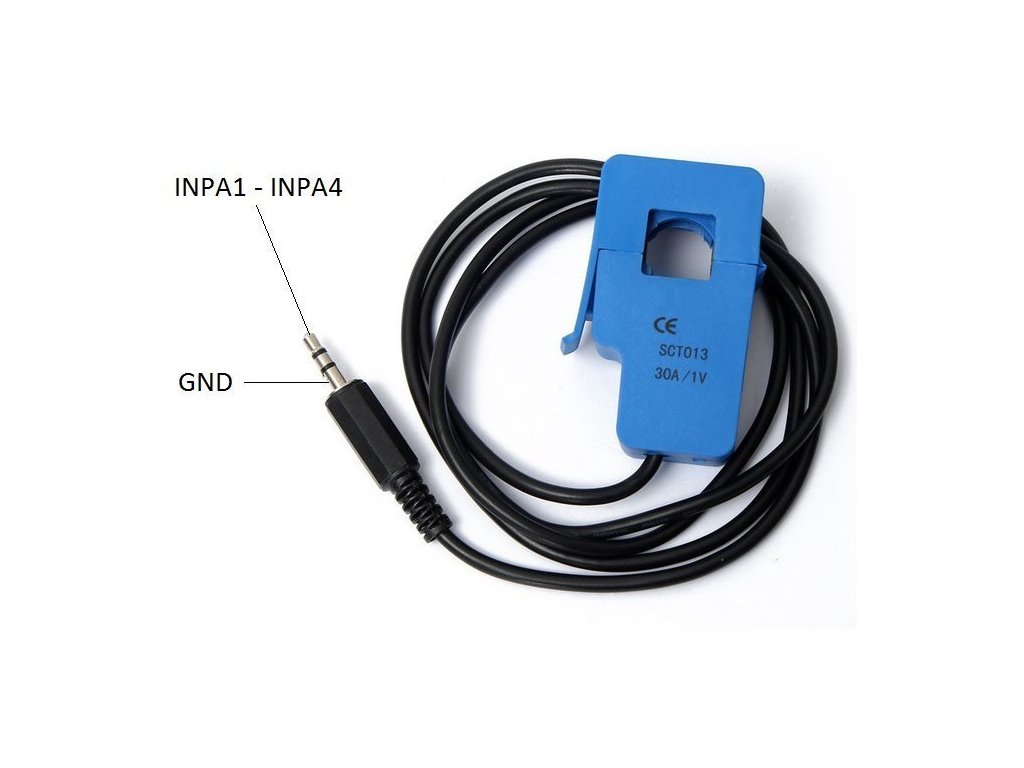 Neinvazívne prúdový transformátor SCT-013-030 pre meranie prúdu nepriamou metódou.