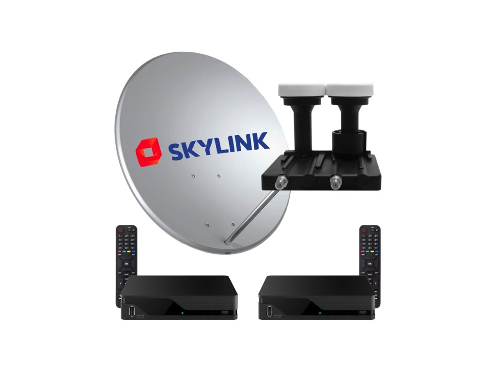 Akční set pro montáž satelitní televize Skylink. Skládá se ze dvou satelitních přijímačů Kaon MZ-52, 80 cm paraboly TS 80 Fe Economy line a konvertoru Zircon Monoblok Twin M-0243.