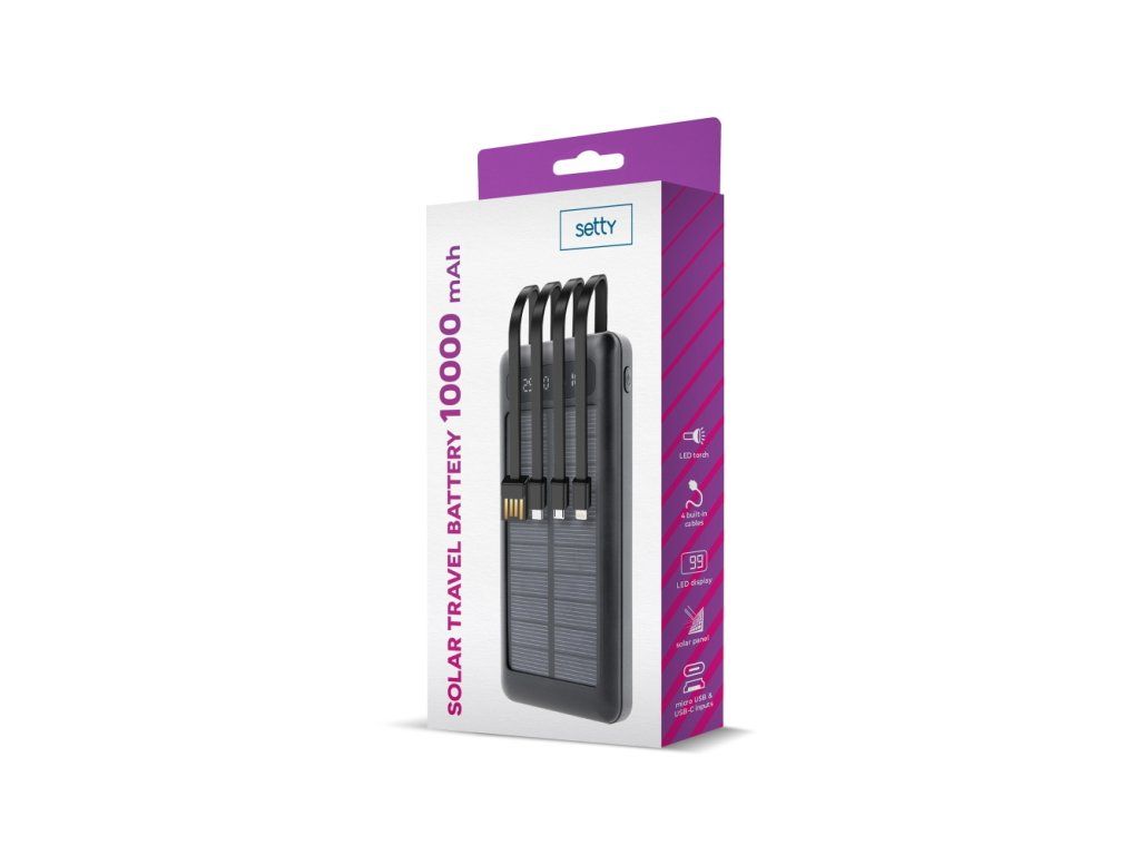 SETTY SLR-100 Solárna powerbanka 10000 mAh, čierna (GSM115778)