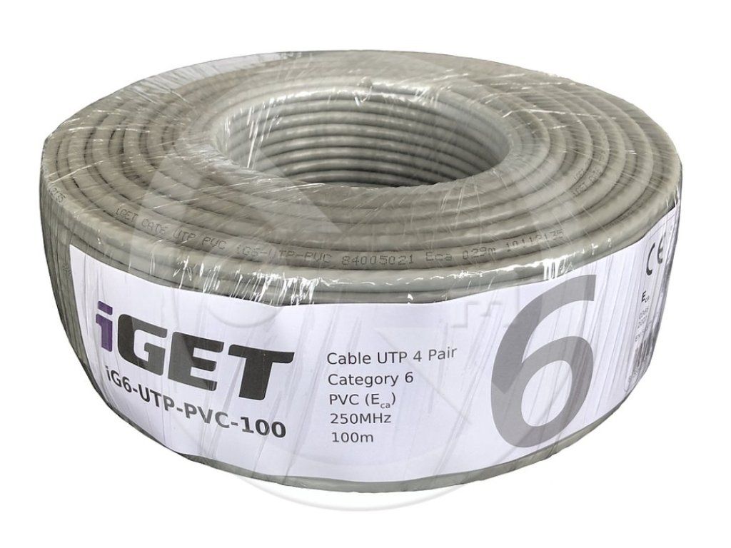 Sieťový kábel iGET CAT6 UTP PVC Eca 100m/roleKábel drôt CAT6 netienený s plášťom PVC a triedou reakcie na oheň Eca