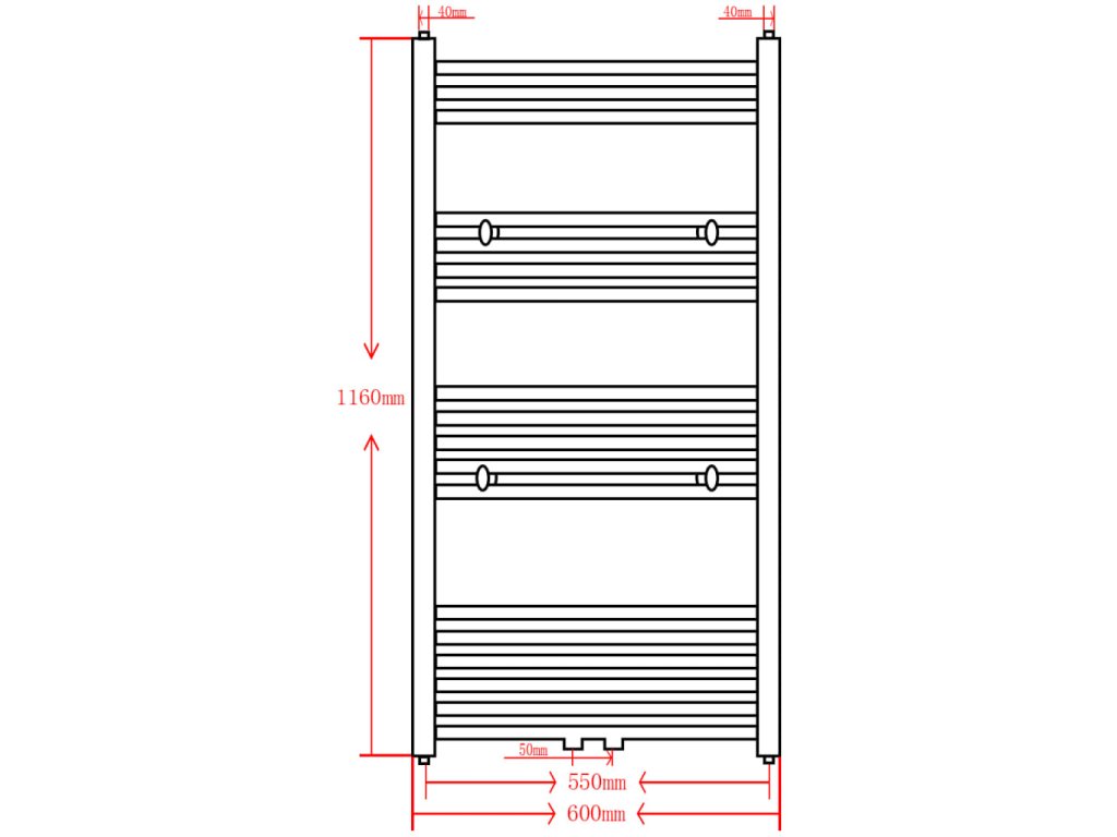 Sivý rebríkový radiátor na centrálne vykurovanie, rovný 600x1160 mm