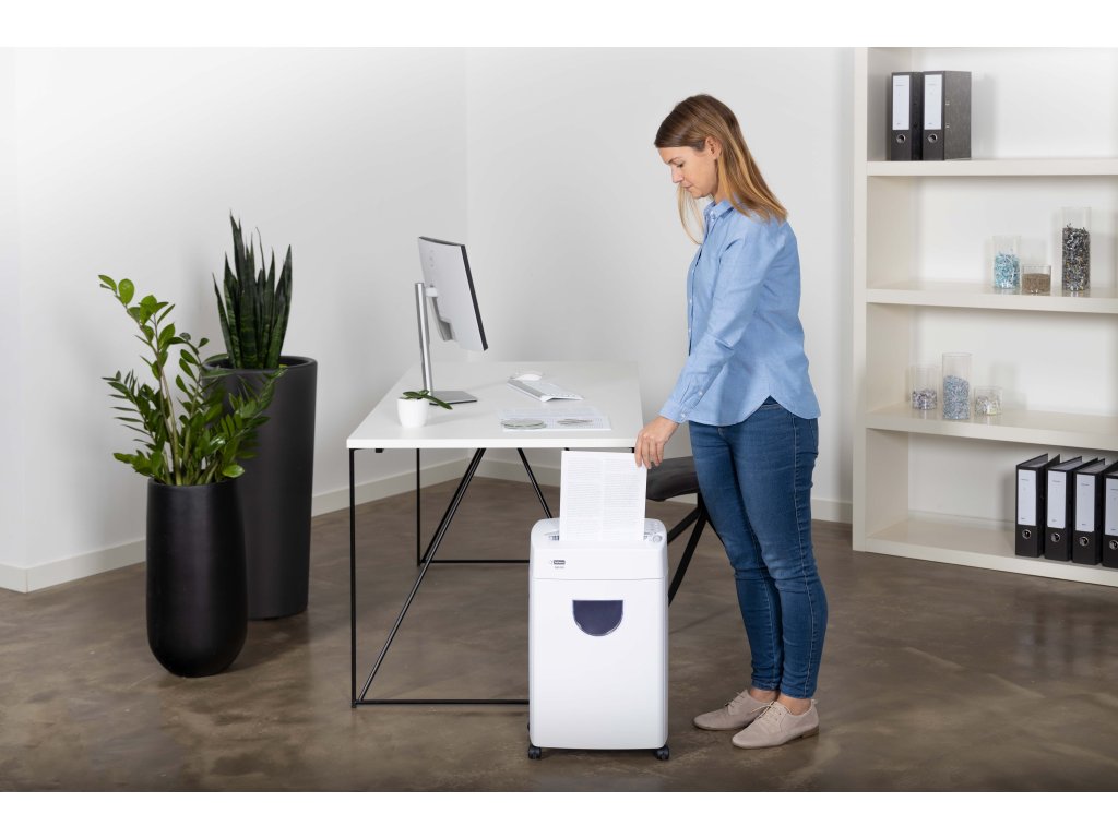 - Skartovačka s příčným řezem 2 x 12 mm - Skartace papíru, sponek ze sešívačky a kreditních karet - Objem odpadové nádoby 22 l - Maximální kapacita skartace až 9 listů papíru 80 g/m2 - Vstupní šíře 220 mm - Hlučnost <65 dB - Úroveň zabezpečení P-5 - Rychlost řezu 0,025 m/s - Až 5 min nepřetržité skartace - Vstupní otvor pro kreditní karty - Automatický start / stop a zpětný chod - Indikátor přehřátí - Stabilní základ na čtyřech kolečkách - Rozměr 570 x 350 x 250 mmDodatočné parametre