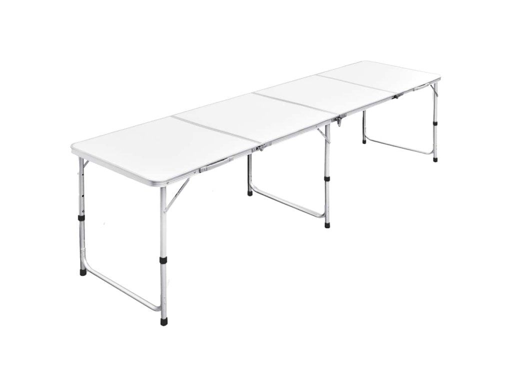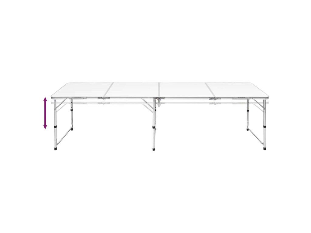 Skladací výškovo nastaviteľný kempingový stôl, 240 x 60 cm, hliníkový