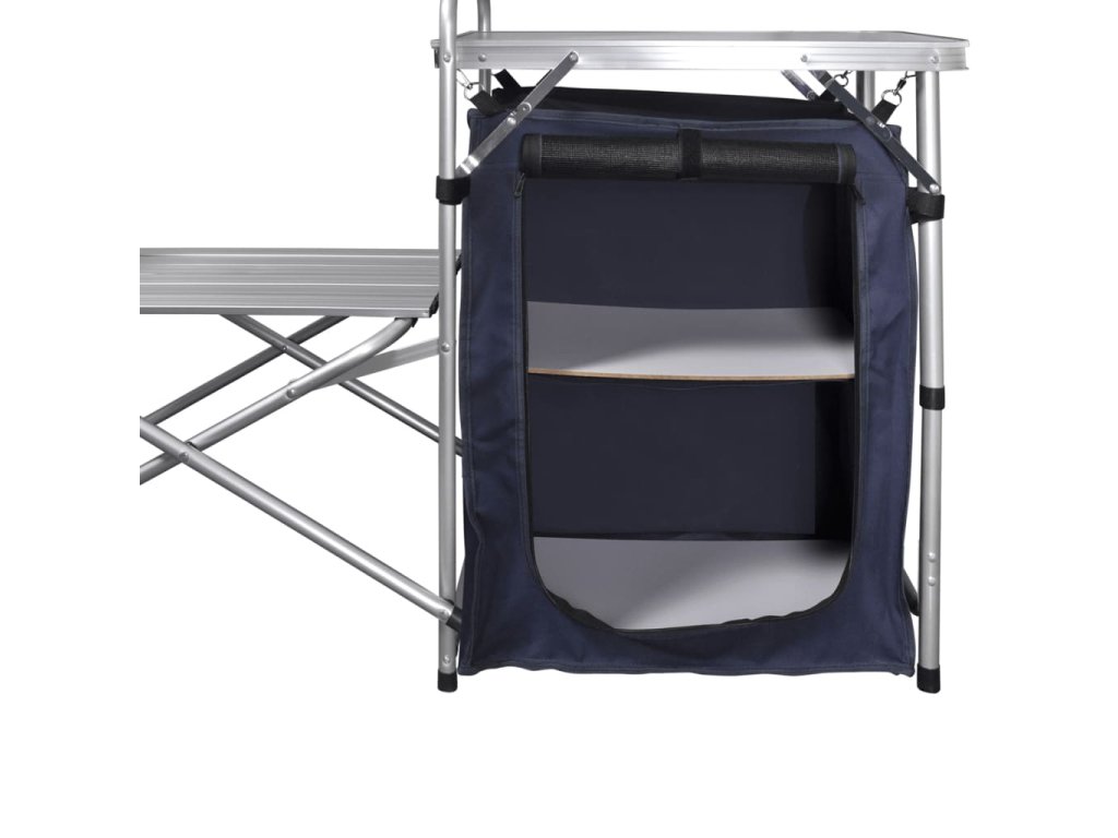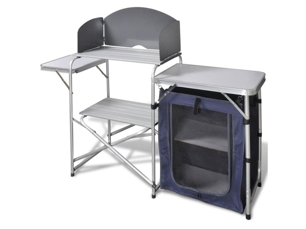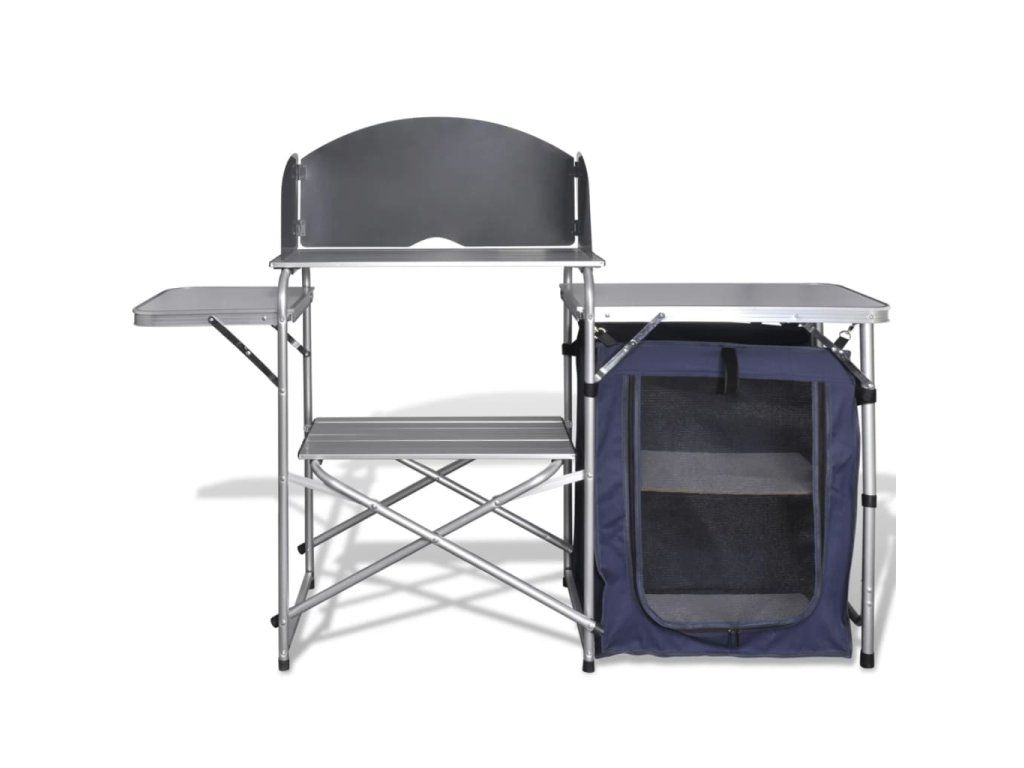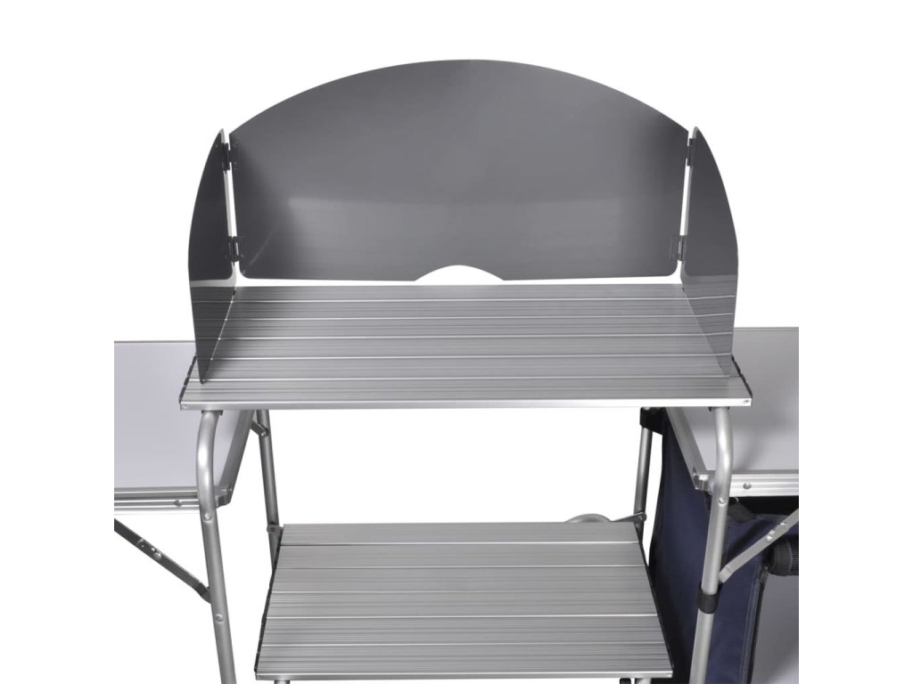 Skladacia kempingová kuchynská jednotka s ochranou proti vetru, hliník