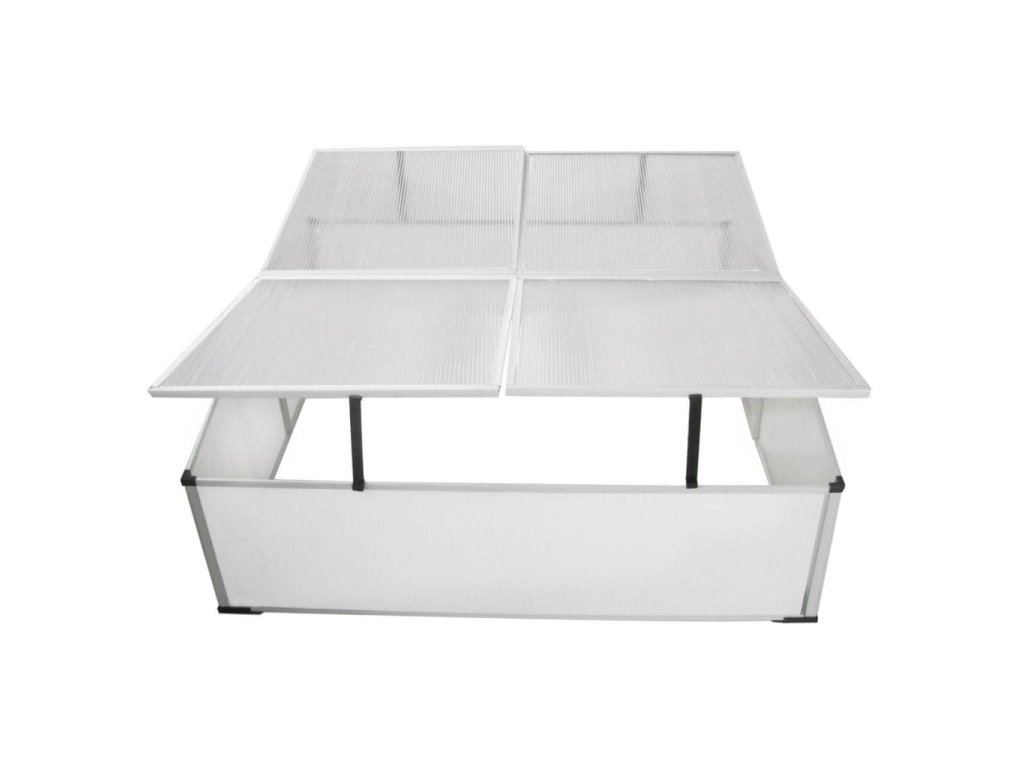Skleník umožňuje začať pestovanie kvetín a / alebo rastlín na začiatku roka. Steny a veká z mini-skleníka sú vyrobené z polykarbonátu. Skleník nemá podlahu a je jednoducho umiestnený nad mladé rastliny alebo semienka, takže ich môžete zasadiť priamo do zeme. Tieto 4 veká môže byť nastavená tak, aby ste boli schopní dosiahnuť každý roh mini-skleníka. Tento materiál je transparentný. Skleník je odolný teplu a proti nárazu. Materiál je tiež odolný proti UV žiareniu a ušetrí až do 40% viac tepla v porovnaní so sklom. Skleník je schopný odolávať teplotám v od -25 ° C do + 60 ° C. Počas zime tento mini-skleník bude chrániť mladé rastliny alebo semienka pred mrazom. Počas leta môžete predĺžiť dobu úrodu. Môžete množstvo svetla, vzduchu, tepla a vlhkosti.