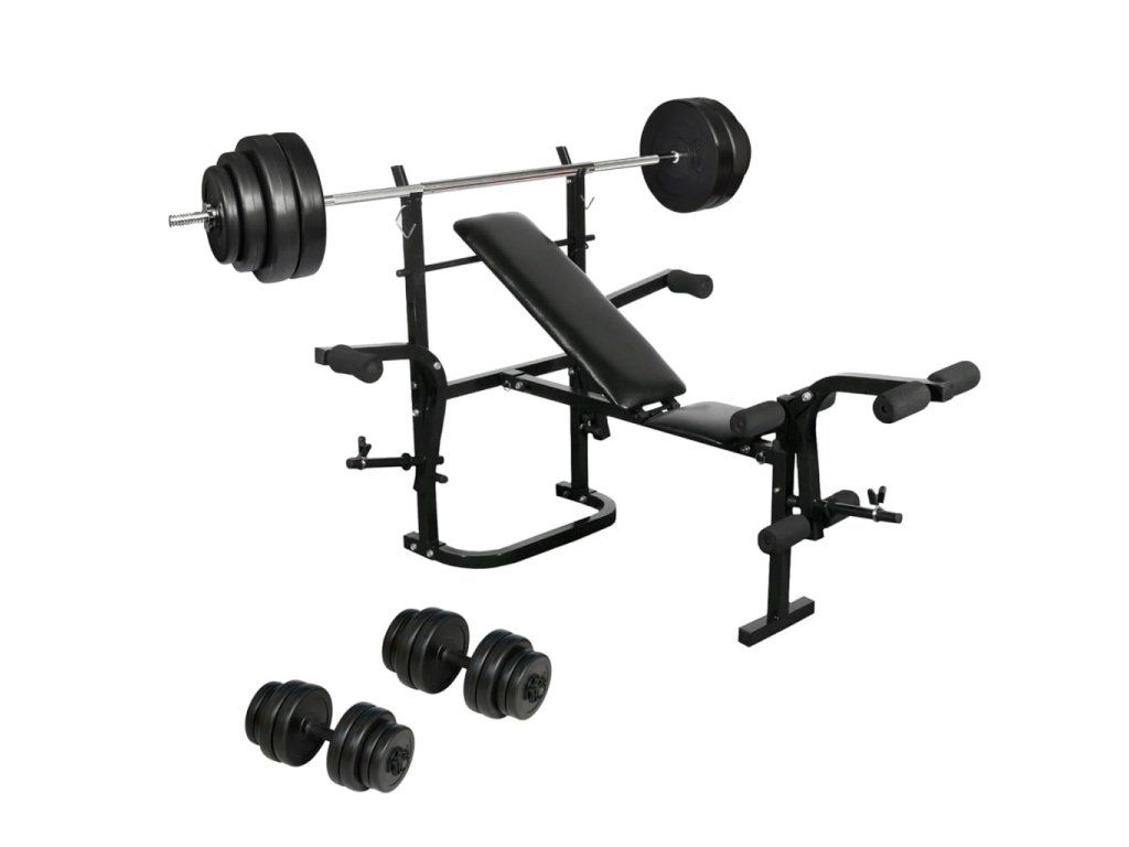 Prichádza s kompletnou posilňovacou lavicou, obojručnou činkou a párom jednoručných činiek, tento set vám iste pomôže trénovať širokú škálu svalov.Táto všestranná skladacia posilňovacia lavica sa používa pre cvičenie rôznych svalových skupín. Môžete vykonávať bench-press, zadné zakopávanie, sit-up a mnoho ďalších cvičení! Nastaviteľné operadlo je veľmi dobre polstrované, aby vám zaistilo pohodlie počas cvičenia. Lavica sa môže jednoducho sklopiť do zvislej polohe po použití, čo umožňuje skladovanie jednoduchšie. So silnou kovovou tyčou, set ergonomických činiek má celkovú hmotnosť 30 kg. Vďaka protišmykovým plastovým rukoväťiam, naše činky sa nešmýkajú z vašich rúk. Skrutkové uzávery maju hviezdičkové skrutky, aby sme sa uistil, že kotúče sú vždy pevne namontované na tyči. Všetky 16 kotúče sú pokryté robustným plastom, ktorý zníži nepríjemné zvuky. S 8 činkami ako súčasťou setu, celkovú hmotnosť je 60 kg. Skrutkové obojky vo forme hviezdy zaistia že činky zostanu na svojom mieste. Naša lavica, je určite skvelou voľbou pre domácnosti alebo osobné trénovacie strediská!