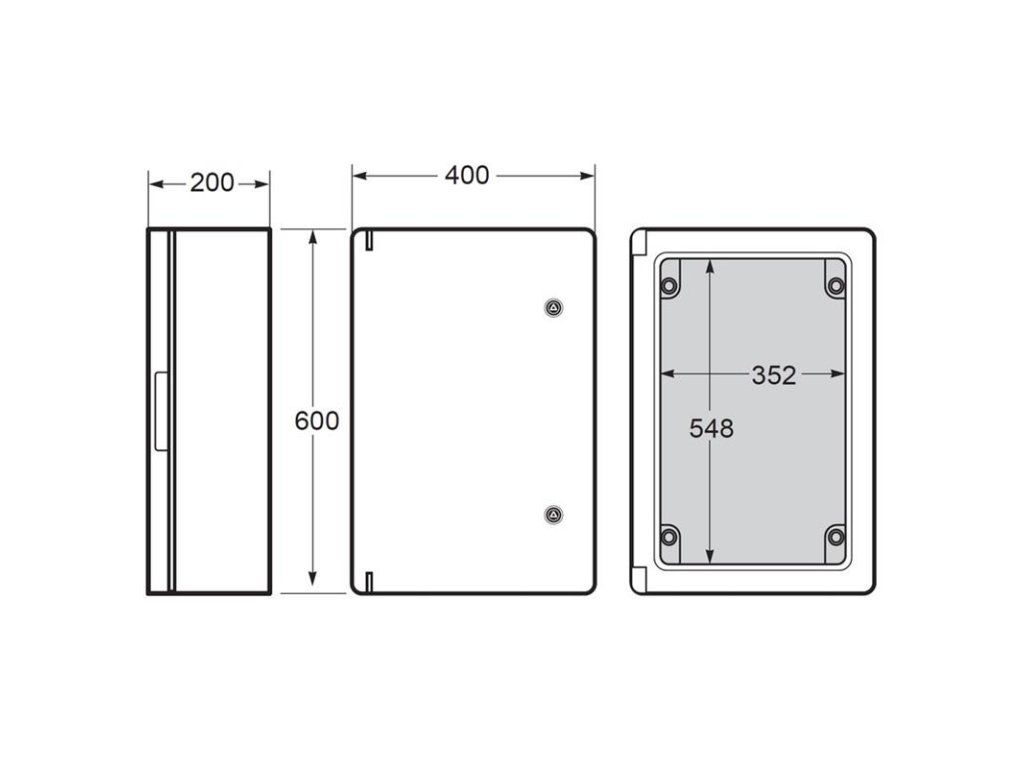 Univerzální rozvodná plastová skříň MAGNA 39146 ve vyšším krytí IP65, rozměry: 600x400x200mm, součástí skříně je pozinkovaná montážní deska a příslušenství pro montáž na omítku, neprůhledné plné dveře, barva: světle šedá. Univerzální rozvodná plastová skříň MAGNA 39146 ve vyšším krytí IP65, rozměry: 600x400x200mm (výška x šířka x hloubka), max. vnitřní rozměry (po osazení mont. desky): 548x352x170mm (výška x šířka x hloubka), IK08, plastová, materiál ABS, zkouška žhavou smyčkou 650°C, bezhalogenová a UV odolná, montáž na povrch, barva: světle šedá, rozsah teplot -25°C + 85°C, aplikované normy: EN 62208, balení: 1ks (krabice), součástí balení je pozinkovaná montážní deska a příslušenství pro montáž na omítku, plné dveře - otevírání plastovým trojhranem, hladké boky, schopnost rozptylu tepla: 120W, dokoupitelné příslušenství: kovový zámek 39120, ocelový montážní rám s DIN lištou a modulovým krytem (4x16mod.) I-39146, polyesterová montážní deska PL-39146, tyto univerzální skříně MAGNA IP65 se hodí do vlhkého prostředí a do prostředí, kde klasické kovové skříně rychle korodují. Pro montáž na hořlavé podklady je nutné použít nehořlavou podložku.Dodatočné parametre