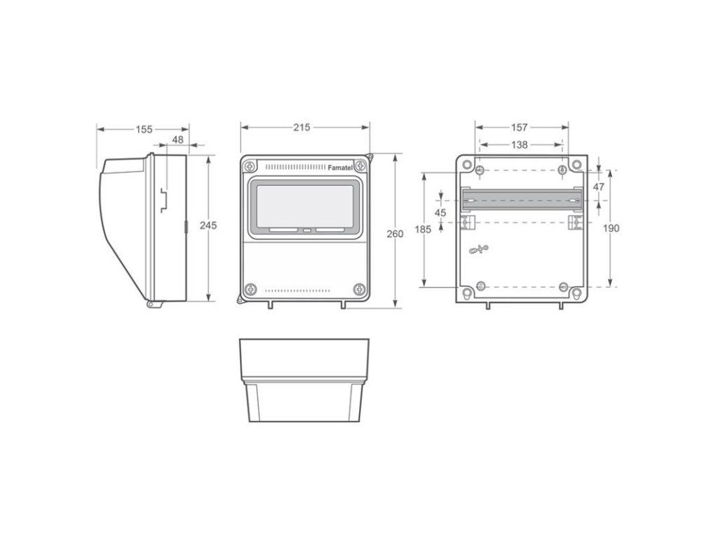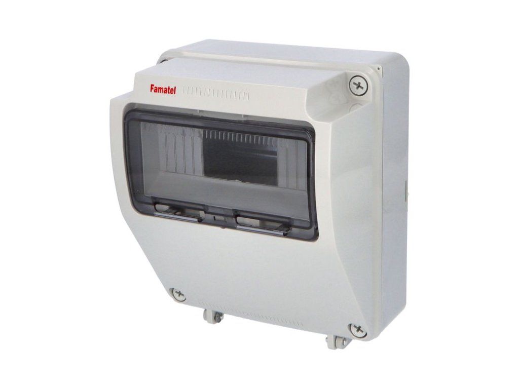 Plastová skříň AcquaCOMBI 3957 s prostorem pro umístění zásuvek a ovládacích přístrojů, ve vyšším krytí IP65, 9mod., rozměry: 245x215x155mm, svorkovnice PE/N součástí, montáž na omítku, průhledná dvířka, barva: světle šedá. Plastová skříň AcquaCOMBI 3957 s prostorem pro umístění zásuvek a ovládacích přístrojů, ve vyšším krytí IP65, rozměry: 245x215x155mm, (výška x šířka x hloubka), modulový prostor 9mod., plombovatelný kryt, IK08, materiál ABS plast, zkouška žhavou smyčkou 650°C, bezhalogenová a UV odolná, montáž na povrch, barva: světle šedá, rozsah teplot -25°C +85°C, aplikované normy: EN 62208, balení: 1ks (fólie), polykarbonátová průhledná dvířka, PE svorkovnice součástí (6x16mm2) / N svorkovnice součástí (6x16mm2), hladké boky (stěny) - pro vyvrtání otvoru a osazení vývodkou, schopnost rozptylu tepla: 18W, dokoupitelné příslušenství: kovový nástavec pro uzamčení modul. prostoru 150039570, průchodka pro spojování skříní 3903, držadlo 3917. Pro montáž na hořlavé podklady je nutné použít nehořlavou podložku.