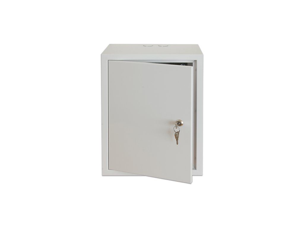 Montážní ochranná skříň uzamykatelná s odjímatelnou plechovou plotnou na zadní straně. Skříň je vyrobena z pozinkovaného materiálu proti zrezivění s povrchovou úpravou bílé barvy. Po odstranění krytek získáme otvory pro kabeláž na horní a spodní straně.| Rozměry: | |