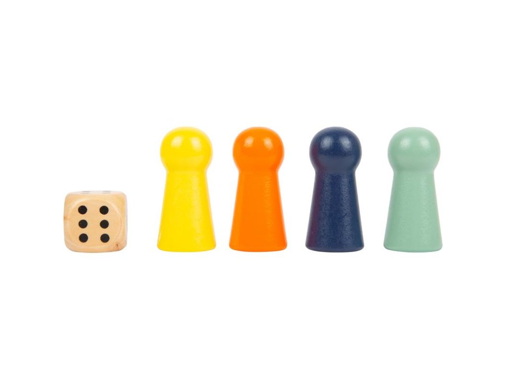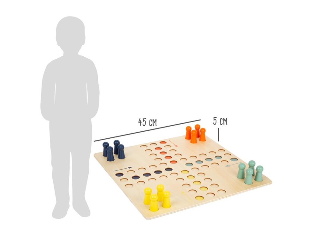 Človeče, nehnevaj sa v extra veľkom formáte! Táto klasická drevená hra, v ktorej musíte najprv dostať všetky dieliky do domčeka, je veľmi vzrušujúca. Hracia doska bola vytvorená špeciálne pre hráčov s malými, trasľavými rukami. Hracia kocka a 16 dielikov sú zabalené v látkovom vrecúšku. Figúrky sú oranžové, žlté, modré a mätovo zelené, takže si môžete vybrať svoju obľúbenú farbu. Deti sa hravou formou naučia aj počítať.Dodatočné parametre