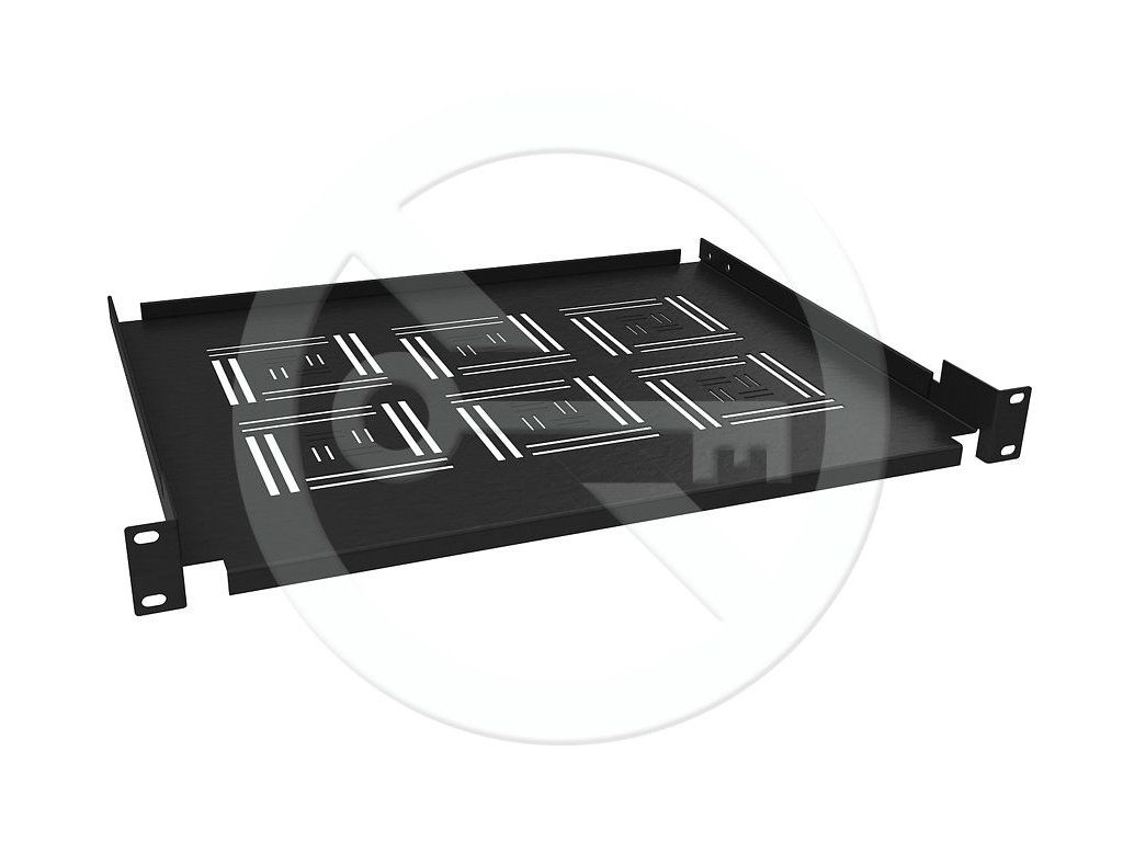 Polica 19" 1U 350mm ukladacie plato BK úchyt na prednej lišty UP-03-B