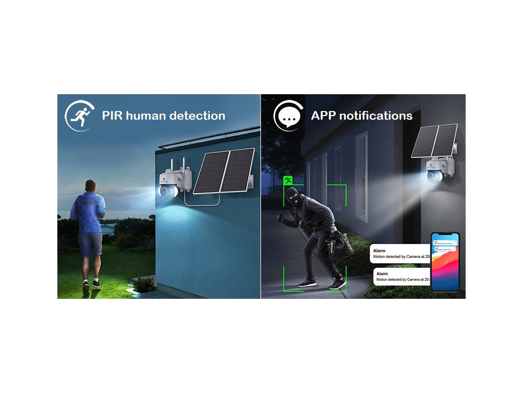 Otočný motorizovaný objektiv · ochrana IP66 · IR i barevné noční vidění až 30m · typ připojení 4G · TF/SD card uložiště · Cloud uložiště · Full HD 1080P rozlišení, výkon solárního panelu 20W max. · kapacita baterie 20000 mAh · PIR funkce · mobilní notifikace · ovládání přes mobilní aplikaci Solární HD kamera Viking HDs03 4G Solární HD kamera VIKING HDs03 4G s otočným motorizovaným objektivem, ochranou IP66 a silným nočním infračerveným viděním. Vhodná pro zabezpečení prostorů bez možnosti napájení. Díky třem solárním panelům je kamera zcela nezávislá na elektrické síti. Funguje pouze se SIM kartou 4G (kamera není kompatibilní se SIM kartami mobilního operátora Orange) Klíčové vlastnost: *Typ připojení 4G *Jednoduché ovládání přes mobilní APP *Možnost ukládání dat na standardní paměťové karty TF/MicroSD nebo na Cloudové uložiště *Funkce PIR detekce lidského pohybu a notifikací do mobilního telefonu *IR (infra-red) i barevné noční vidění do vzdálenosti až 30m *Otočný motorizovaný objektiv *Full HD 1080P (1920x1080 pixel) rozlišení *Nahrané video se kóduje do formátu H.265 a H.264+ *Napájení pomocí 3 solárních panelů s výkonem až 22W *IP66 ochrana proti vodě a prachu '' Vysoká kvalita a rozlišení Připojení kamery je zajištěno 4G modemem. Tato kamera vám nabízí vysoké rozlišení Full HD 1080P (1920x1080 pixel), které vám poskytne vždy věrný obraz. Nahrané video se kóduje do formátu H.265 a H.264+. Video můžete buď ukládat na TF kartu, cloud, nebo pomocí aplikace sledovat on-line. Před spuštěním kamery stačí vložit TF/micro SD kartu a aktivní SIM kartu, pak velice jednoduše spárovat s mobilní aplikací a kamera je on-line a připravena k přenosu obrazu i zvuku, ve dne i v noci. Solární výkonné napájení Solární HD kameru Viking HDs03 4G lze napájet buď solárním panelem, který dodá vaší kameře dostatečný výkon pro provoz nebo přes USB-C přímo z elektrické sítě. Celkový výkon solárního panelu je 20W. Díky své integrované baterii (20 000mAh) vydrží bez problému pořizovat záznam i v době, kdy zrovna není vydařený slunečný den. Tato kamera díky své funkci automatického uspání výrazně šetří spotřebu energie. Kamera se automaticky aktivuje v případě, kdy zaznamená pohyb. Jednoduché ovládání přes mobilní aplikaci Díky motorizovanému pohonu je možné kamerou otáčet až 350° horizontálně a 90° vertikálně. Ovládat kameru můžete jednoduše přes mobilní aplikaci, díky níž můžete též pořizovat záznamy a dostávat notifikace ohledně detekce pohybu. Chytrá mobilní aplikace vám též umožní pohodlný vzdálený přístup, na kameru se tak můžete následně připojit z jakéhokoliv koutu světa. Mnoho užitečných funkcí Solární HD kamera VIKING HDs03 4G je vybavená mikrofonem i reproduktorem pro obousměrný přenos zvuku. Mimo jiné jsou zde i dva světelné zdroje, které vám nabízí barevný obraz záznamu až na 30m a zároveň IR (infra-red) noční vidění pro zaznamenání pohybu i v případě neideálních světelných podmínek. Ochrana IP66 vám zaručí bezpečné užívaní kamery i v dešti. Obsah balení: *2 x Přípojný solární panel *Kamera *Nabíjecí kabel *Prodlužovací kabel *Sada na instalaci a pinzeta *Externí baterie *Držák na zeď (pro solární panel) Technické specifikace: Typ senzoru: 2.0MP 1/2.7'' CMOS SIM karta: Nano SIM Rozlišení záznamu: 1920*1080 Kapacita baterie: 20000mAh Výkon solárního panelu: 20W Noční vidění: IR (infra-red) a barevné Podpora TF karty: 16GB-128GB Pracovní teplota: -10~60 ° C Spotřeba v pohotovostním režimu: 0,05W Ochrana: IP66 (platí pouze v případě, že jsou všechny vstupní i výstupní konektory zakryté např. silikonovým ochranným krytem) Rozměry: 235*240*115mm Hmotnost: 2Kg Úhel záběru: 350°/90°Dodatočné parametre