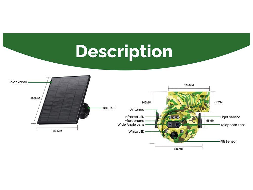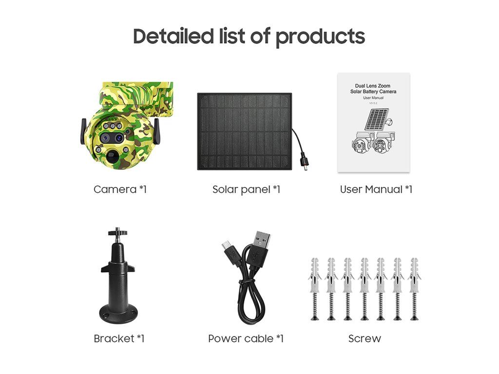2304 x 1296 rozlišení · 4G připojení · 12x manuální zoom · PIR detekce - pohybový senzor · podpora TF karty až 128GB · cloudové úložiště · aplikace UBOX · kapacita baterie 7800 mAh · dvousměrný přenos zvuku · PTZ otočná kamera 355°/90° · solární napájení · mobilní notifikace · IR a bílé LED osvětlení · funguje pouze se SIM kartou 4G · ovládání přes mobilní aplikaci Solární kamera Viking HDs04 4G Solární kamera Viking HDs04 4G nabízí vysoké rozlišení 2304 x 1296, 12x manuální zoom. Díky solárnímu panelu je zcela nezávislá na elektrické síti. Kamera je vybavena PIR senzorem, který spolehlivě detekuje pohyb až na vzdálenost 12 metrů. Toto zařízení je ideálním řešením pro zabezpečení domácností, firem i venkovních prostor bez možnosti napájení. Funguje pouze se SIM kartou 4G (kamera není kompatibilní se SIM kartami mobilního operátora Orange) Klíčové vlastnosti: •12x manuální zoom: Přiblížení s ostrostí až do 70 metrů vám umožní detailně sledovat každý pohyb. •Pokročilá detekce pohybu: PIR senzor s dosahem 0-12 metrů spolehlivě detekuje lidi a automaticky spustí alarm, který vás okamžitě upozorní na neobvyklé aktivity. •Dvousměrný přenos zvuku: Díky vestavěnému mikrofonu a reproduktoru můžete komunikovat přímo přes aplikaci UBOX, ať jste kdekoliv. •Široké zorné pole: PTZ kamera nabízí horizontální otočení o 355° a vertikální o 90°, což vám poskytne plnou kontrolu nad sledovaným prostorem. •Vysoké rozlišení videí: Rozlišení 2304 x 1296 zajišťuje ostrý a detailní obraz, který zachytí vše důležité. •Úložiště na dosah: Podpora micro SD karty až 128 GB nebo volitelné cloudové úložiště vám poskytne dostatek prostoru pro všechny záznamy. Solární napájení a odolnost Kamera je vybavena třemi vestavěnými bateriemi s kapacitou 7800 mAh, které jsou napájeny solárním panelem. Tím zajišťuje nepřetržitý provoz bez nutnosti připojení k elektrické síti. Solární kamera Viking HDs04 4G je odolná vůči extrémním teplotám (-30°~+60°) a vlhkosti (0%~90%), což ji činí ideální pro venkovní i vnitřní použití. Solární kamera Viking HDs04 4G je perfektním řešením pro ty, kteří hledají spolehlivou, ekologickou a vysoce výkonnou bezpečnostní kameru s pokročilými funkcemi a snadnou obsluhou přes aplikaci UBOX. Obsah balení: 1 ks - Solární kamera Viking HDs04 4G 1 ks - Sada šroubů 1 ks - Solárního panelu 1 ks - USB-C kabel 1 ks - Uživatelská příručka Technické specifikace: •Model: Solární kamera Viking HDs04 4G •12x zoom: Lze manuálně zvětšit nebo zmenšit, ostrost až do 70 metrů •PIR: Vzdálenost detekce PIR je 0-12 metrů, může detekovat lidi a sledování a poté poskytnout poplachové tlačítko. •Dvousměrný přenos zvuku: Vestavěný mikrofon, díky kterému můžete mluvit prostřednictvím aplikace •Alarm: Ano •Úložiště (max. 128 GB paměťová karta nebo cloudové úložiště): Například při provozu 24 hodin se využije 5 GB na jeden den, 123 GB lze použít na zbylé dny •Čip: T40 •Senzor: 2 ks 1/2.9” CMOS Senzor (obrázkový snímač) •Čočka: 4+12mm •Úhel kamery: 85° •Formát videa: H265 •Rozlišení videa: 2304 x 1296+2304 x 1296 •Aplikace(operační systém): Android, iOS •Aplikace: UBOX •Síť: 4G, funguje pouze se SIM kartou 4G •Režim detekce: PIR •Detekční vzdálenost: 0-12 metrů •Detekční úhel: 120° •Automatická detekce: Ano •PTZ úhel: Horizontální 355° Vertikální 90° •Infračervené světlo: 2 ks infračervených světel •Bílé světlo: 3 ks bílé LED •Reproduktor: Vestavěný (3Wx1) •Mikrofon: Vestavěný •Cloudové úložiště: Volitelné dle aplikace •Místní úložiště: Micro SD karta (max 128GB) •Režim napájení: Solární •Kapacita baterie: Vestavěné 7800 mAh 3ks baterií 18650 •Maximální provozní výkon: 5W •Provozní prostředí: Vnitřní/venkovní •Provozní teplota: -30°~+60° •Provozní vlhkost: 0%~90% •Vstup: USB-C •Vhodný adaptér pro nabití - parametr: DC 5V/2A •Hmotnost: Kamera 584g, Solární panel 228g •Rozměry: Kamera 14,2 x 13,6 x 14,5 cm, Solární panel 18,3 x 16,8 cm Ceník cloudového úložiště: 30 denní subscription (7 denní archivace záznamu na cloudu) 1.99 USD 30 denní subscription (30 denní archivace záznamu na cloudu) 3.99 USD 180 denní subscription (7 denní archivace záznamu na cloudu) 10.99 USD 180 denní subscription (30 denní archivace záznamu na cloudu) 19.99 USD 360 denní subscription (7 denní archivace záznamu na cloudu) 19.99 USD 360 denní subscription (30 denní archivace záznamu na cloudu) 39.99 USDDodatočné parametre