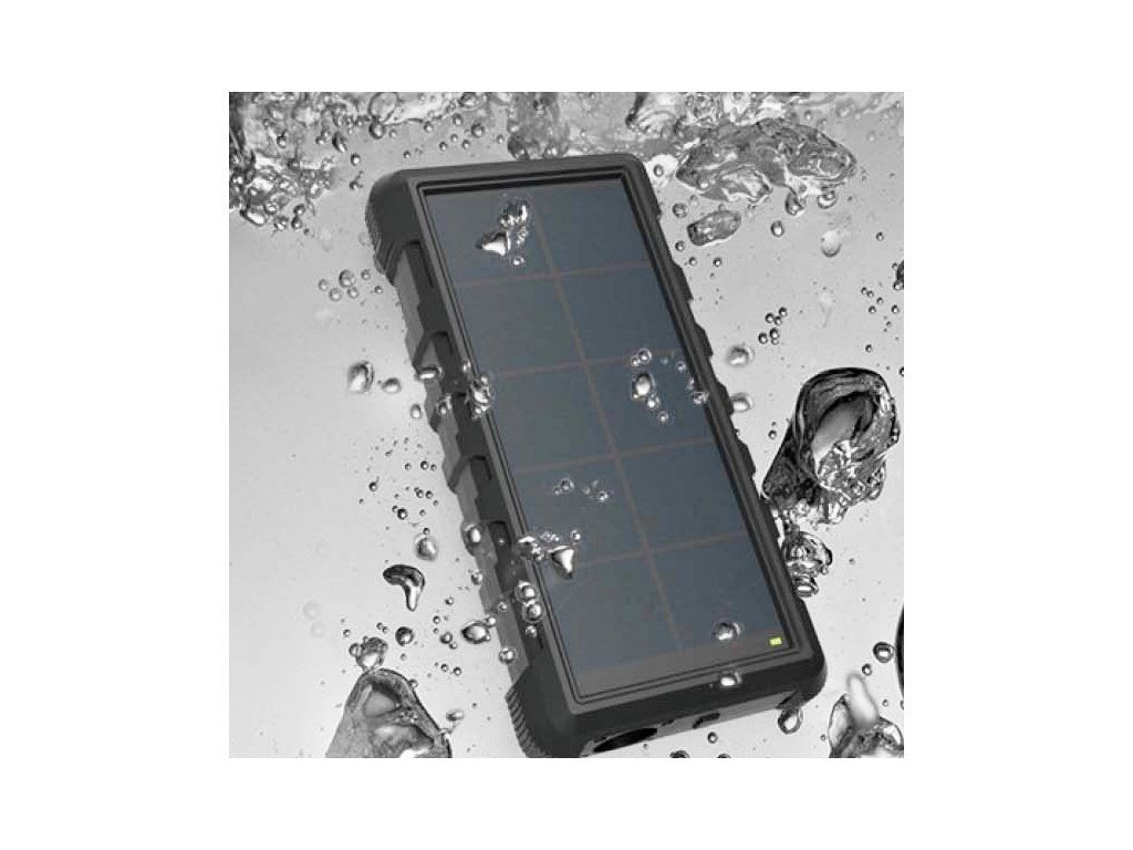 Kapacita 24000mAh • rychlonabíjení QC3.0 a Power Delivery • wireless bezdrátové nabíjení 10W • výkonný solární panel 300mA max.• podpora vlastního rychlonabíjení až 18W. Solární outdoorová powerbanka VIKING W24W 24000mAh Solární powerbanka se zvýšenou odolností IP67, určena pro jakékoliv outdoorové aktivity, kde potřebujete odolnější a neomezený zdroj energie. Pomocí solárního panelu se špičkovým výkonem 300mA, můžete tuto powerbanku dobíjet kdykoliv. Její 100% odolnost proti vodě a nečistotám z ní dělá užitečného pomocníka na vašich raftech, táborech, dovolených, turistice, cyklovýletech, prostě všude, kde oceníte především její pevné a odolné tělo. Výbava Pomocí 3 výstupních portů (2x USB-A, 1x USB-C) s podporou rychlonabíjení Qualcomm® QC 3.0 a Power Delivery můžete nabíjet jakoukoliv drobnou elektroniku včetně tabletů a notebooků do max. nabíjecího výkonu 18W. Nově je powerbanka W24W vybavena i funkcí bezdrátového nabíjení s výkonem až 10W! Pro rychlonabíjení samotné powerbanky jsou určeny porty USB-C a micro USB. Oba s max. nabíjecím výkonem až 18W! Též můžete využít solární nabíjení nebo oba způsoby kombinovat. Kromě plné výbavy modelu VIKING W24W oceníte také výkonnou POWER LED svítilnu (120LM). Kvalitní těsnící kryty pro všechny USB porty zabrání proniknutí vody a nečistot do powerbanky v jakékoliv situaci, a to i v případě ponoření celé powerbanky do vody. Klíčové vlastnosti *3 výstupní porty s podporou rychlonabíjení technologií Qualcomm® QC 3.0 Technology a Power Delivery *Bezdrátové Wireless nabíjení až do výkonu 10W! *IP67! Zcela vodotěsné a odolné tělo powerbanky proti prachu a ostatním nečistotám (platí pouze v případě, že jsou všechny vstupní i výstupní konektory zakryté např. silikonovým ochranným krytem). *1W silná LED dioda se 120LM pro dosvit až 30 metrů. *3 režimy LED světla (stále světlo, tlumené světlo, stroboskop) *Podpora obousměrného konektoru USB-C (vstup i výstup) *Zabudovaná karabina v těle powerbanky pro snadné uchycení *Externí karabina v balení *Pogumované tělo powerbanky pro bezpečné držení za zhoršených podmínek a velice kvalitní těsnící kryty *Výkonný solární panel 300mA (špičkový výkon až 400mA) *LED indikace stavu nabíjení a solárního nabíjení Technické specifikace: Základní: Kapacita: 24000mAh/89Wh Solárního panel: 5V 300mA (špičkový výkon až 400mA) 2W max Baterie: Li-Pol Rozměr: 180*89*30mm Hmotnost: 553g Nabíjení: Bezdrátové Wireless nabíjení: 10W Max USB QC3.0 výstupní napětí/proud: 2x 5V/3A, 9V/2A, 12V/1.5A USB-C výstupní napětí/proud: 5V/2.4A, 9V/2A, 12V/1.5A USB-C vstupní napětí/proud: 5V/2A, 9V/2A, 12V/1.5A Micro USB vstup: 5V/2A, 9V/2A, 12V/1.5A Min. počet nabití: 700x Nabíjecí doba: cca 5h při použití nabíjecího výkonu 18W, cca 9 hodin při použití min. nabíjecího výkonu 10W Ostatní: Příslušenství: nabíjecí kabel micro USB, USB-C, karabina LED světlo: 120LM, 3 módy, dosvit více než 30m Materiál: ABS + PC Odolnost: IP67, zcela voděodolné, prachuodolné (platí pouze v případě, že jsou všechny vstupní i výstupní konektory zakryté např. silikonovým ochranným krytem) Typy ochran: Ochrana proti přebití Nadproudová ochrana Přepěťová ochrana Ochranou proti zkratu Tepelná ochrana Ochrana proti samovolnému vybíjení Ochrana proti nebezpečnému vybití Automatická kontrola nabíjecího proudu a napětíDodatočné parametre
