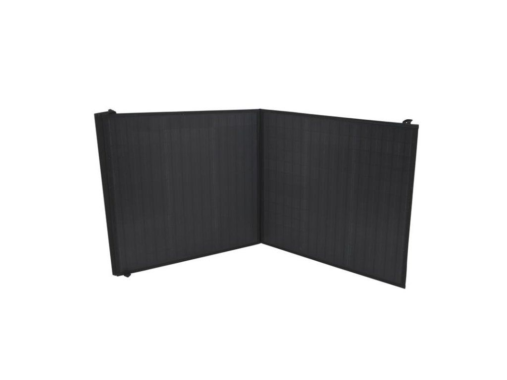 Sestava skládací konstrukce panelu je osazena dvěma panely, kdy každý má rozměr cca 48 x 50 cm. Plně rozložený panel tak má rozměry 102 x 52 cm. Zadní strana je doplněna dvěma podstavci, pro zapření panelu do funkční polohy a kapsou ukrývající napájecí kabel.