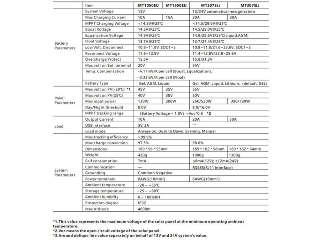 MPPT regulátor 10A pre olovené akumulátory so systémovým napätím 12V a pre FV panely s max. výkonom 130W s max. výstupným napätím 45V a min. výstupným napätím 15,8V. Je primárne určený pre panely so systémovým napätím 12V, ktoré pri maximálnom zaťažení generujú 16–18V.