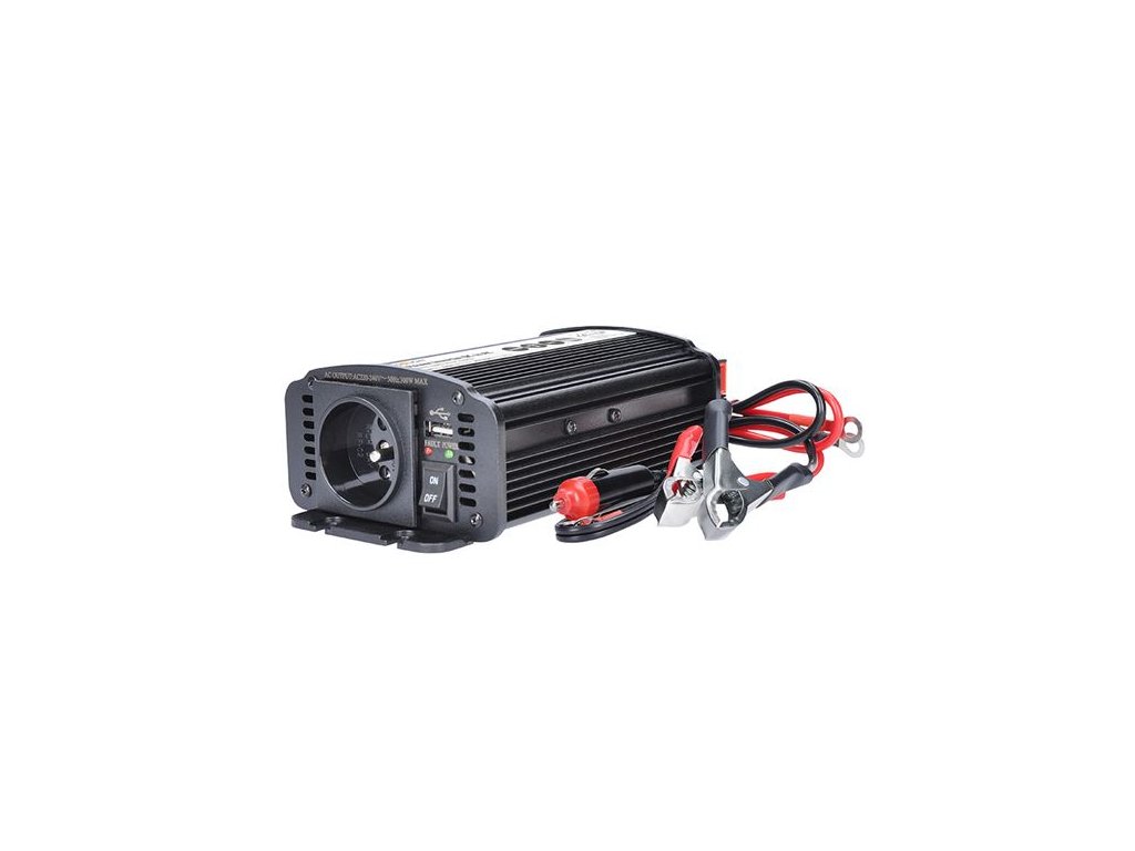 Solight invertor 12V, USB 500mA, kovový, čierny, max. zaťaženie: 300W