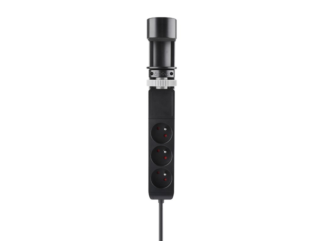 Zásuvku lze upevnění na stůl či pracovní desku pomocí velké otočné matice, bez nutnosti vrtání. Zásuvky 230V jsou schované pod stolem, USB nabíječka a centrální vypínač přístupné shora. Možnost upevnění i v opačném směru, 230V zásuvky nad stolem a USB pod stolem.