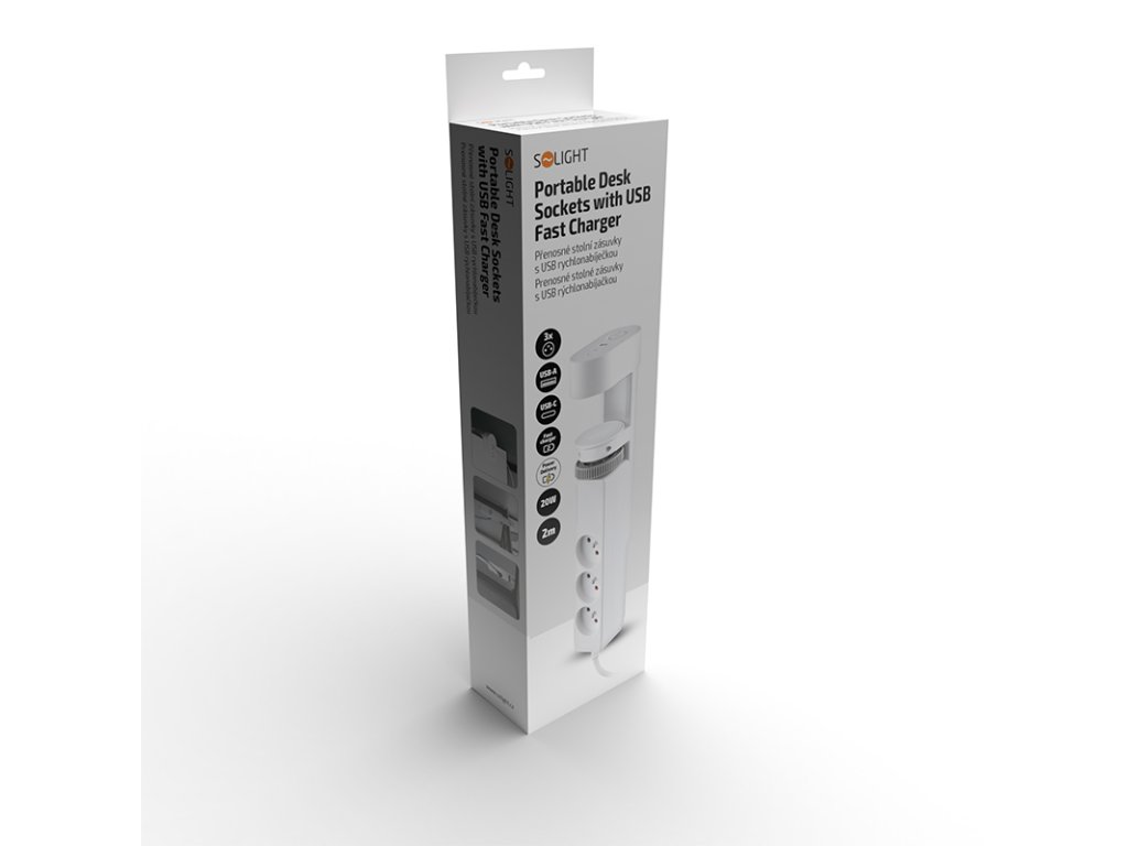 SOLIGHT PP105C-PD20 Stolní zásuvka se svorkou a USB rychlonabíječkou