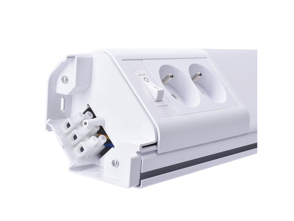 LED rohové lineárne svietidlo s dvojitou zásuvkou (230V/16A).