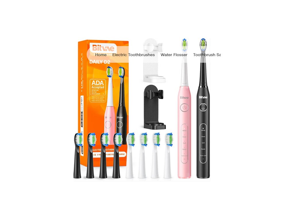 Sonické zubné kefky so sadou náhradných hlavíc a 2 držiaky na zubné kefky Bitvae D2+D2 (ružový a čierny)