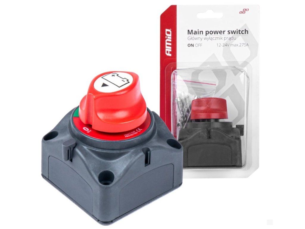 Spínač napájania autobatérie Hebel 12V-24V 275A v puzdre AMIO