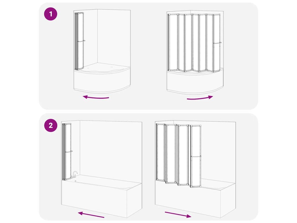 Táto skladacia vaňová zástena je vhodná do akejkoľvek rodinnej kúpeľne. Je veľmi praktická a pohodlná, kedže môžete v prípade potreby otvoriť sedem panelov a poskladať ich tak, aby šetrili miesto ak sa práve nepoužívajú. Je vybavená držiakom na uteráky, takže máte uterák vždy po ruke a nezamočíte podlahu kúpeľne.