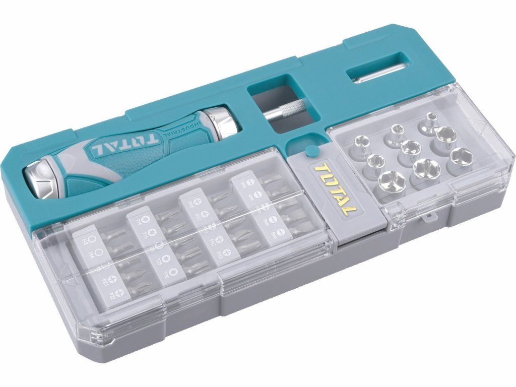 Šroubovák ráčnový s ořechy a hroty, sada 33ks, industrial TOTAL-TOOLS