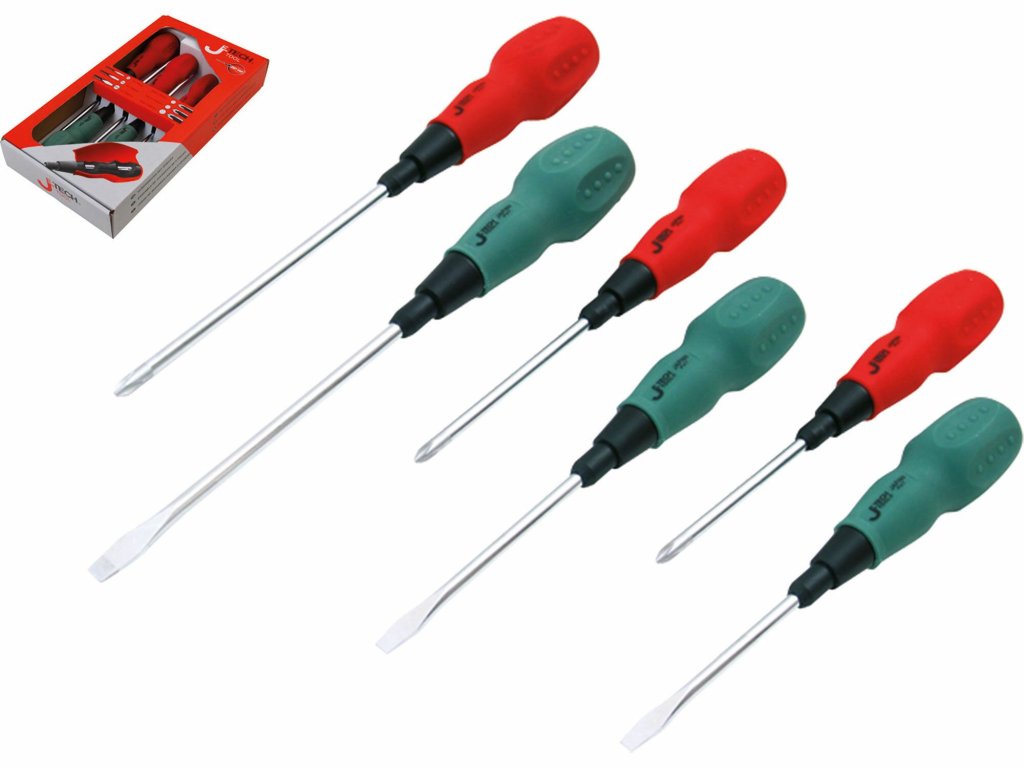 Kvalitní šroubováky s výrazně tvarovanou rukojetí pro maximální přenos síly, s dříkem ze speciální chrom-vanadové slitiny a s přesně frézovaným magnetickým hrotem, který dokonale přilne k hlavám šroubů a vrutů.Dodatočné parametre