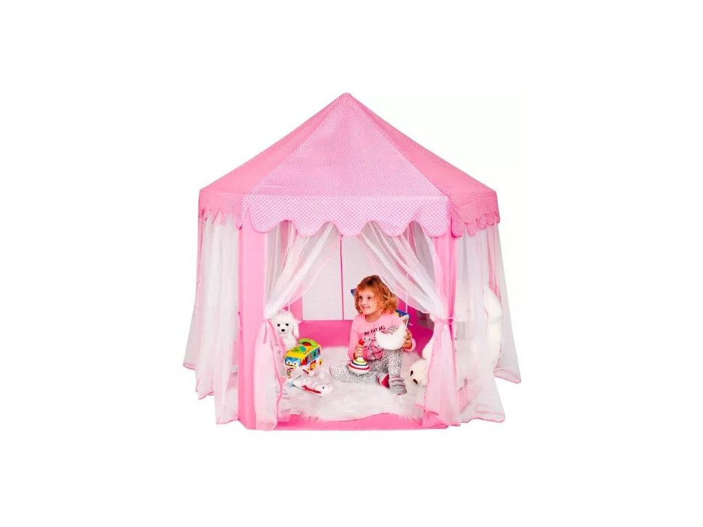 Detský stan zámok. Stan pre malé princezné a ich kamarátov. Deti milujú skrýše, schovávačky a malé domčeky, vytvárajú si tak okolo seba vlastný imaginárny svet, v ktorom prežívajú svoje dobrodružstvá a hry. Zahrajte sa s deťmi na malé kráľovstvo a pomôžte im postaviť krásny zámok, v ktorom sa môžu deti hrať aj odpočívať!