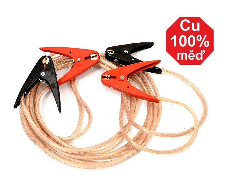 - Kábel je vyrobený zo 100% medi. Neobsahuje žiadne prísady iných kovov, ktoré znižujú účinnosť štartovacích káblov.