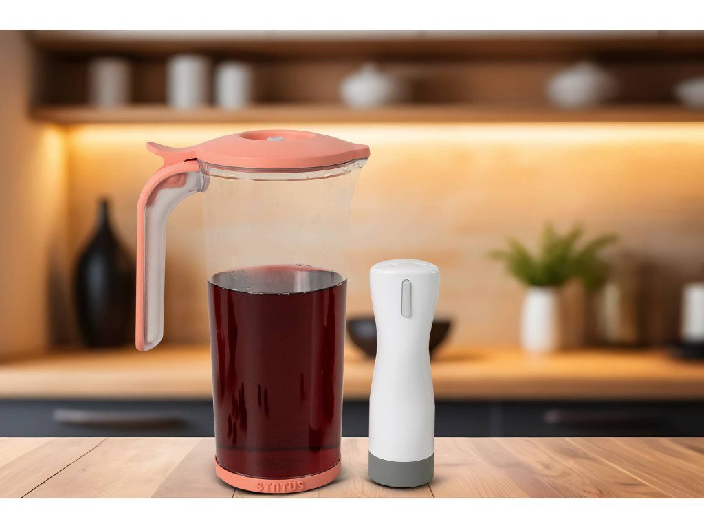 Už žiadne zvetrané domáce džúsy. Jedinečný litrový vákuovací džbán s lisom na citrusy uchová vaše nápoje dlhšie čerstvé, plné chuti a bez zbytočných konzervantov. Pripravte si svoju porciu vitamínov a doprajte si ju napríklad aj niekoľko dní za sebou. Stačí odsať vzduch a užívať si sviežosť každý deň. Vákuový džbán z odolného tritánu má kapacitu až 1 liter a zmestí sa do dverí každej bežnej chladničky. Tritan je nielen nerozbitný materiál, ale navyše sa ani nefarbí. V pokoji tak môžete striedať mrkvový džús so špenátovým či čučoriedkovým smoothie a džbán zostane dokonale číry. Nápoje skladované vo vákuu navyše vydržia až štyrikrát dlhšie oproti bežnému skladovaniu. Vákuum bráni oxidácii (zhnednutiu) aj šíreniu baktérií, a teda kazeniu potravín.