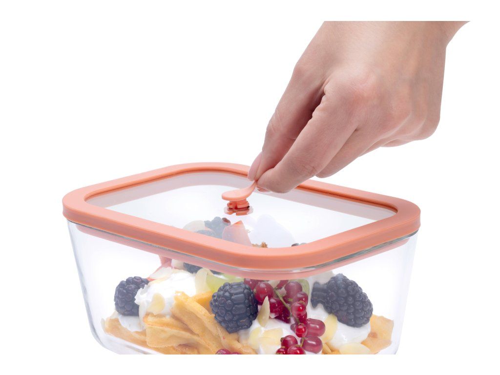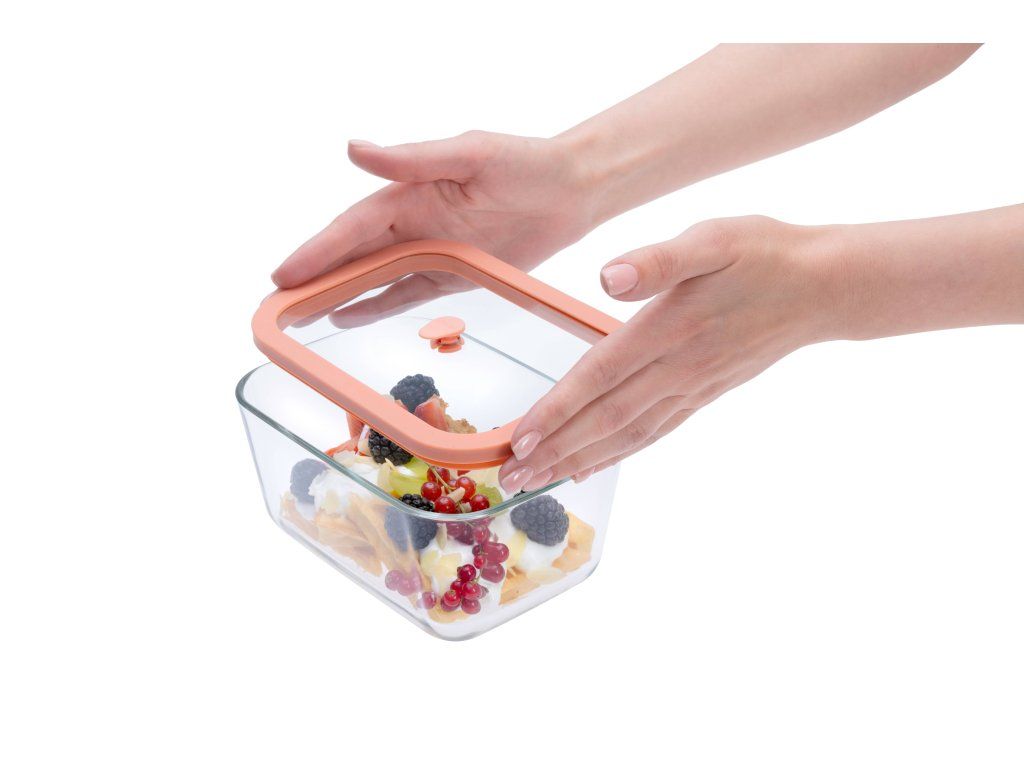 Pri každodennom používaní aj na cestách, vždy je dôležité uchovať potraviny čerstvé a neporušené. Vákuovacie dózy s inovatívnou dvojstupňovou ochranou vám toto spoľahlivo zaistia. Pevné sklenené veko dózu zaťaží a pevne priľne k jej okrajom, čím poskytuje základnú ochranu. Špeciálny uzamykací systém potom vytvára podtlak, ktorý veko hermeticky uzavrie a zabráni prístupu vzduchu.