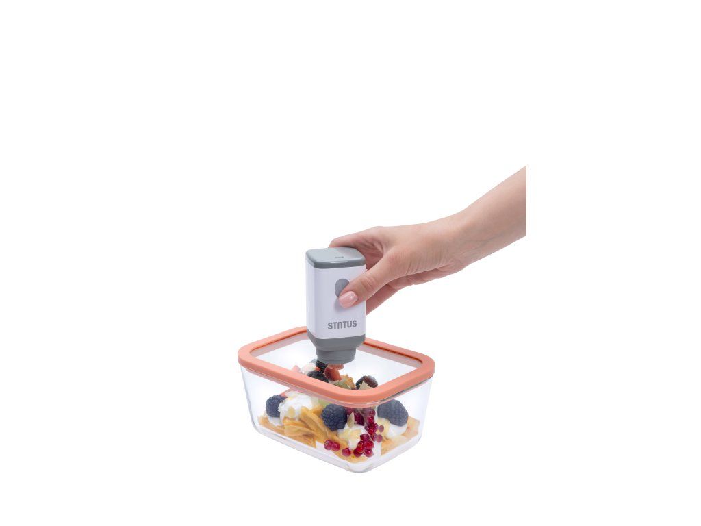 - Kompatibilný s ručnou a elektrickou vákuovou pumpou STATUS (nie sú súčasťou balenia) alebo vákuovačkou potravín s funkciou Canister