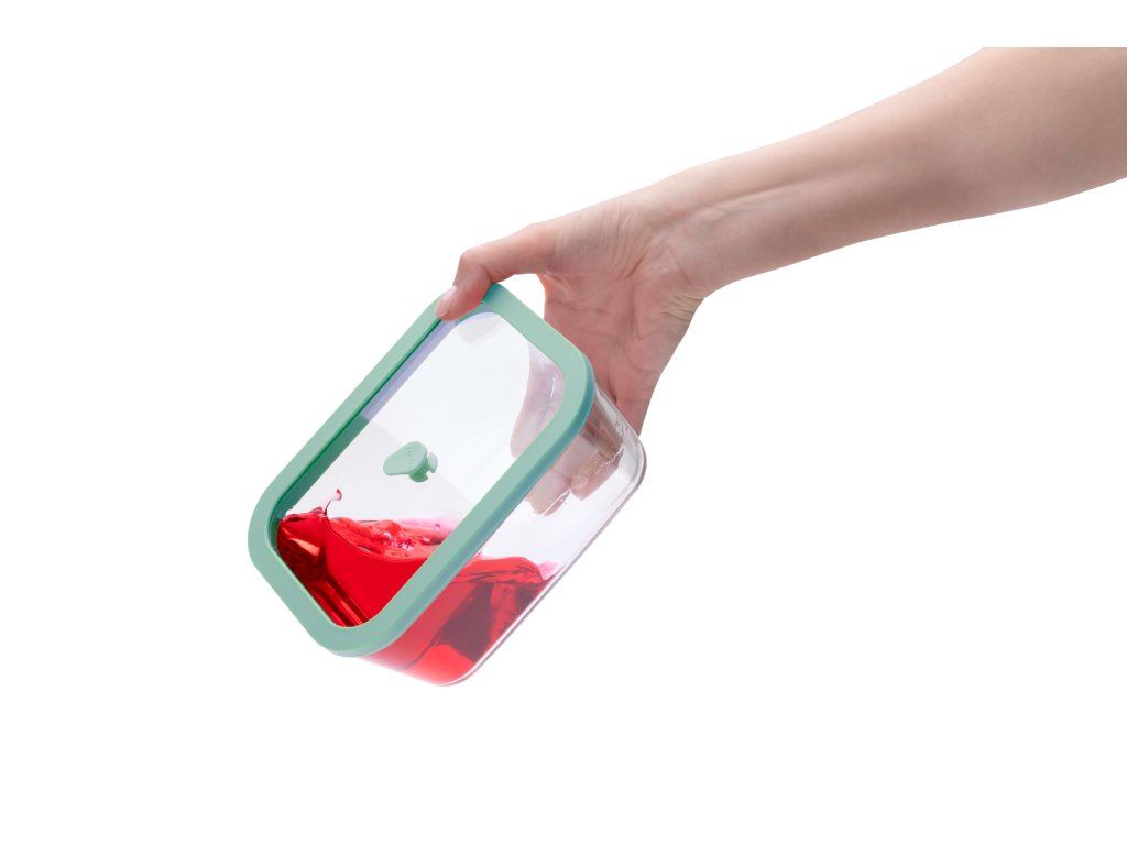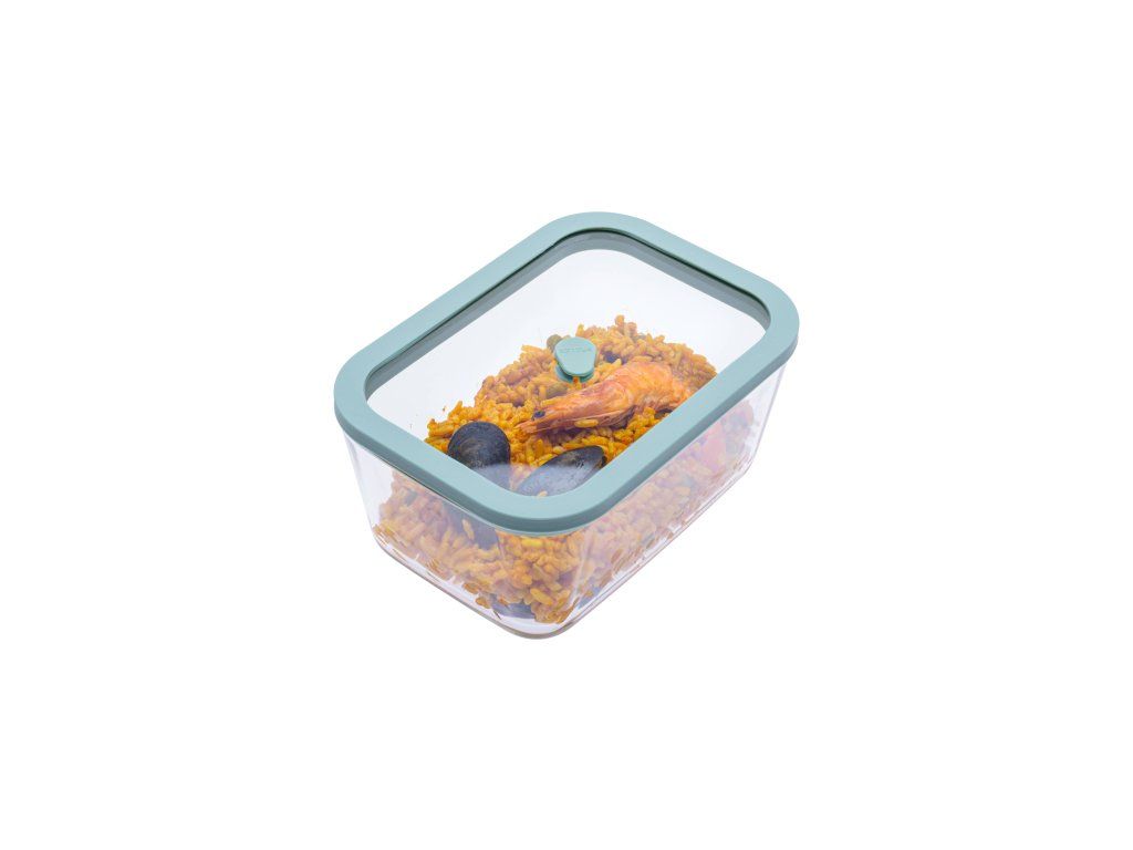 Materiál: Dóza je vyrobená z pevného a odolného borosilikátového skla, veko je vyrobené z tvrdeného skla so silikónovým tesnením. Ventil je zo silikónu, vákuovacia pumpa je z ABS plastu a silikónu. Všetky materiály sú bezpečné pre potraviny.