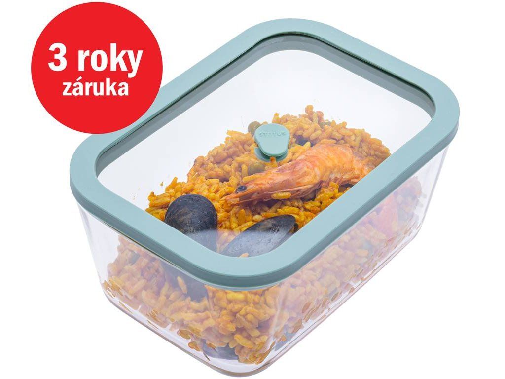 Inteligentné skladovanie potravín v modernej kuchyni je ľahké vďaka vákuovej doze Status Viva z borosilikátového skla s objemom 1,4 litra. Sklenená dóza na potraviny s vekom a inovatívnym ventilom so systémom dvojitej ochrany poskytuje spoľahlivý spôsob uchovania potravín. Vysoko odolné borosilikátové sklo odoláva extrémnym teplotám od -20 °C až +300 °C, čo umožňuje jej využitie nielen na mrazenie, ale aj na pečenie. Silikónový ventil na veku umožňuje hermetické uzavretie aj bez vytvorenia vákua, čím zaistí maximálnu čerstvosť obsahu. Vďaka vákuovému skladovaniu potraviny vydržia až štyrikrát dlhšie, čo prispieva k menšiemu plytvaniu a lepšej organizácii kuchyne.