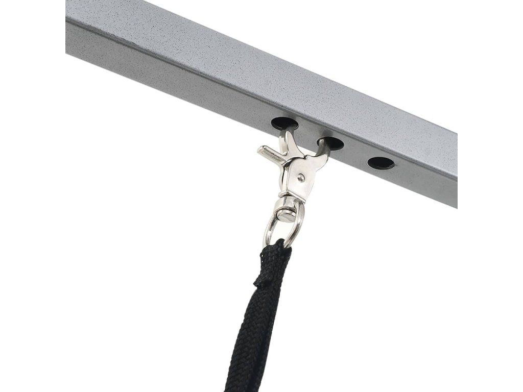 Povrch stola je ošetrený protišmykovou gumou, ktorá vašemu zvieraťu poskytne pohodlný povrch na státie počas čistenia. Nastaviteľné rameno pevne udrží vášho miláčika a má pohyblivú sponu na zamykanie. Rameno sa dá odmontovať, takže keď sa stôl nepoužíva, dá sa lepšie prenášať a skladovať.