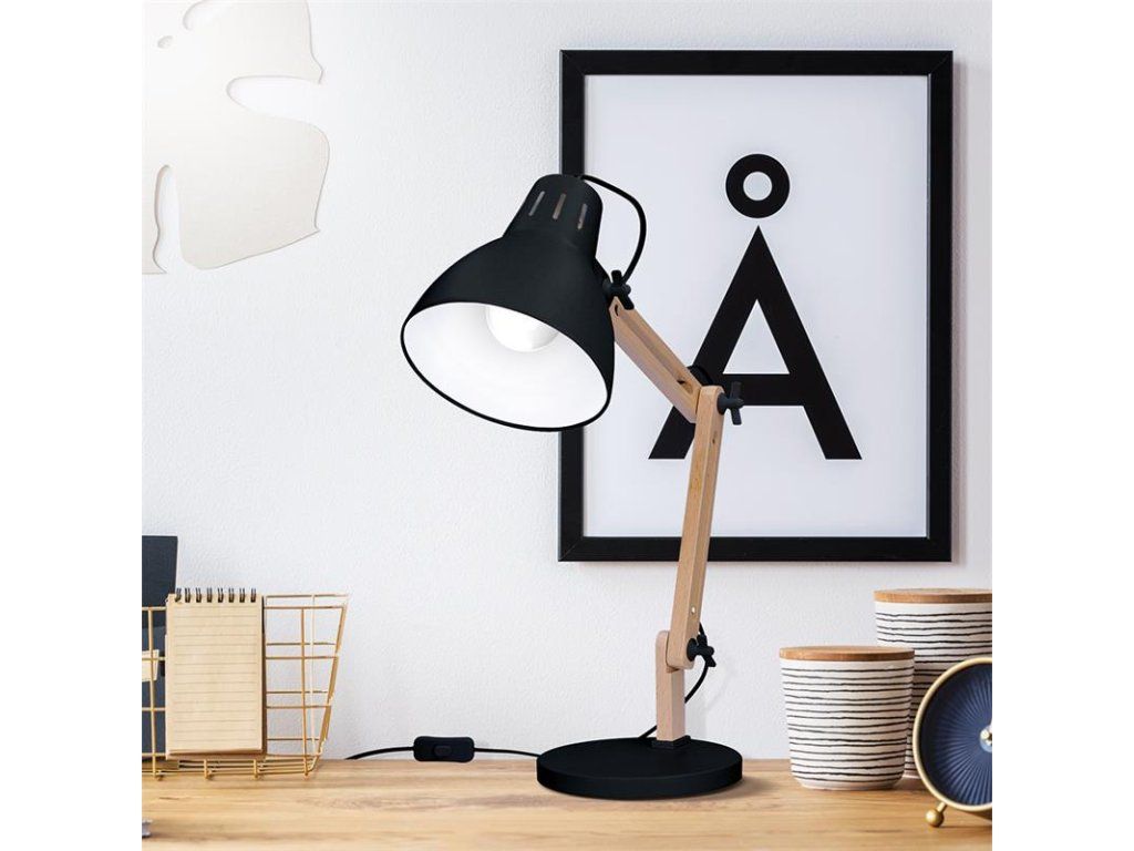 Kovová stolová lampa Falun s drevenými ramenami